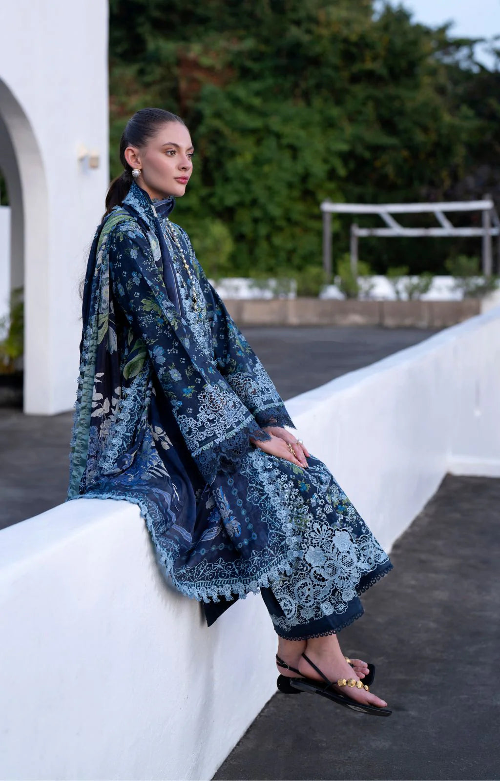 Prepare to be visually captivated – this is Eden! Obsessed with blue hues? Then get ready to meet your match! The deep, deep blue printed canvas is just breathtaking, especially with the shades of light blue resham thread embroidery! That chikankari embroidered shirt in light sky blue thread? So delicate and dreamy! And the organza cutwork style embroidered border? Pure sophistication! The printed sleeves with their embroidered borders are just perfect. Finished with dyed cambric trousers boasting an organza insert patti and a luxurious printed silk dupatta, Eden is the ultimate blue beauty to upgrade your summer wardrobe.