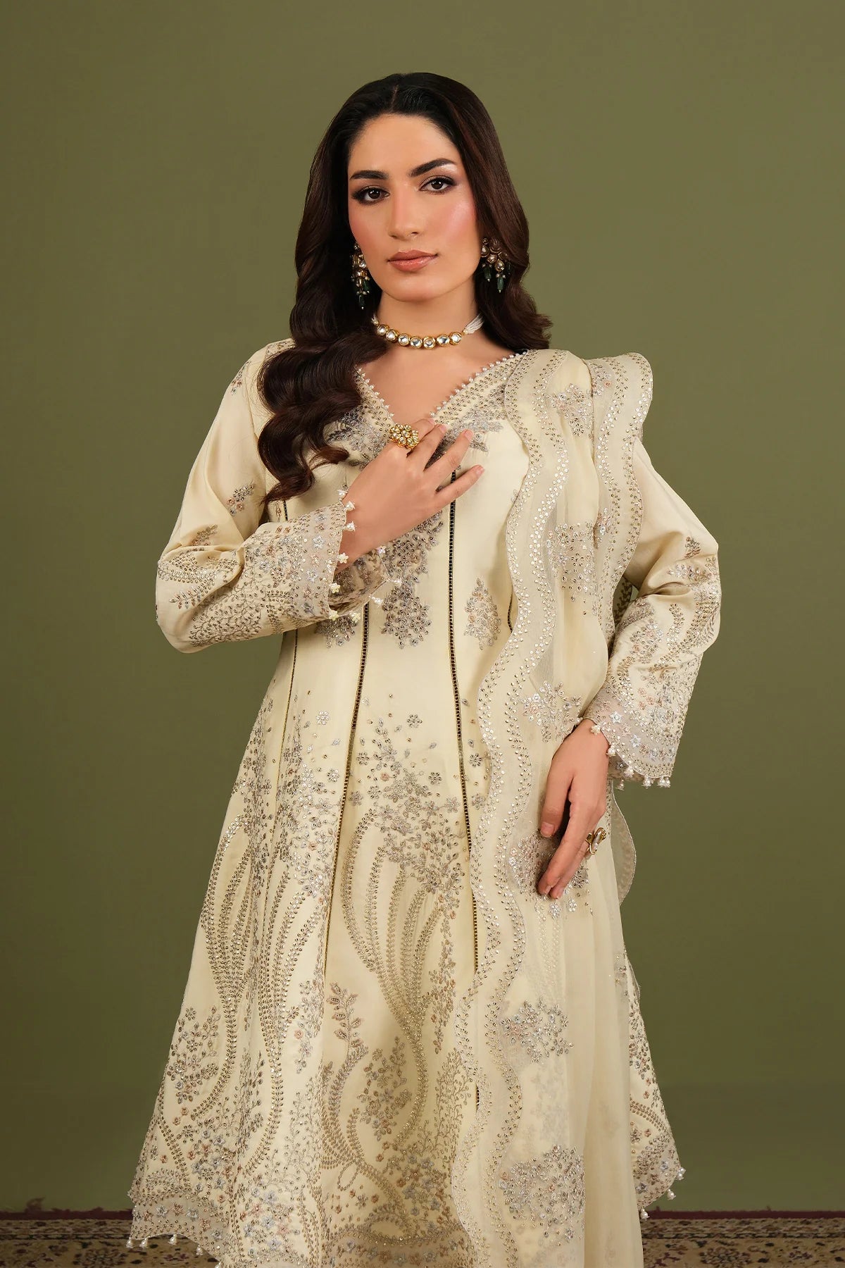 Embroidered Organza Front Back + Sleeves Border