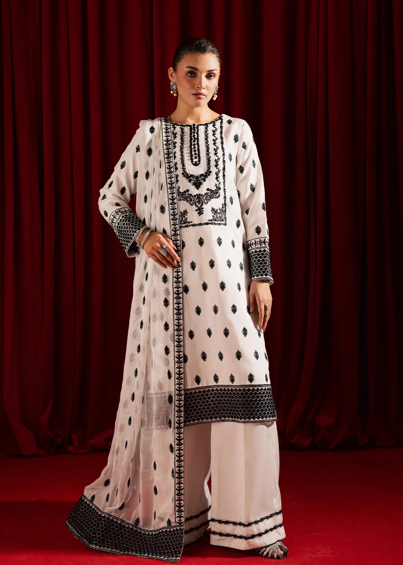 A masterpiece of elegance and artistry. This luxurious ensemble features a beautifully crafted Kurta set adorned with intricate embroidery and sequins, making every detail stand out. Outfit also contains classic palazzo pants with wide border that is full of intricate embroidery and sequins. The chiffon dupatta with chan and detailed borders add the perfect finishing touch, creating a graceful, polished look.