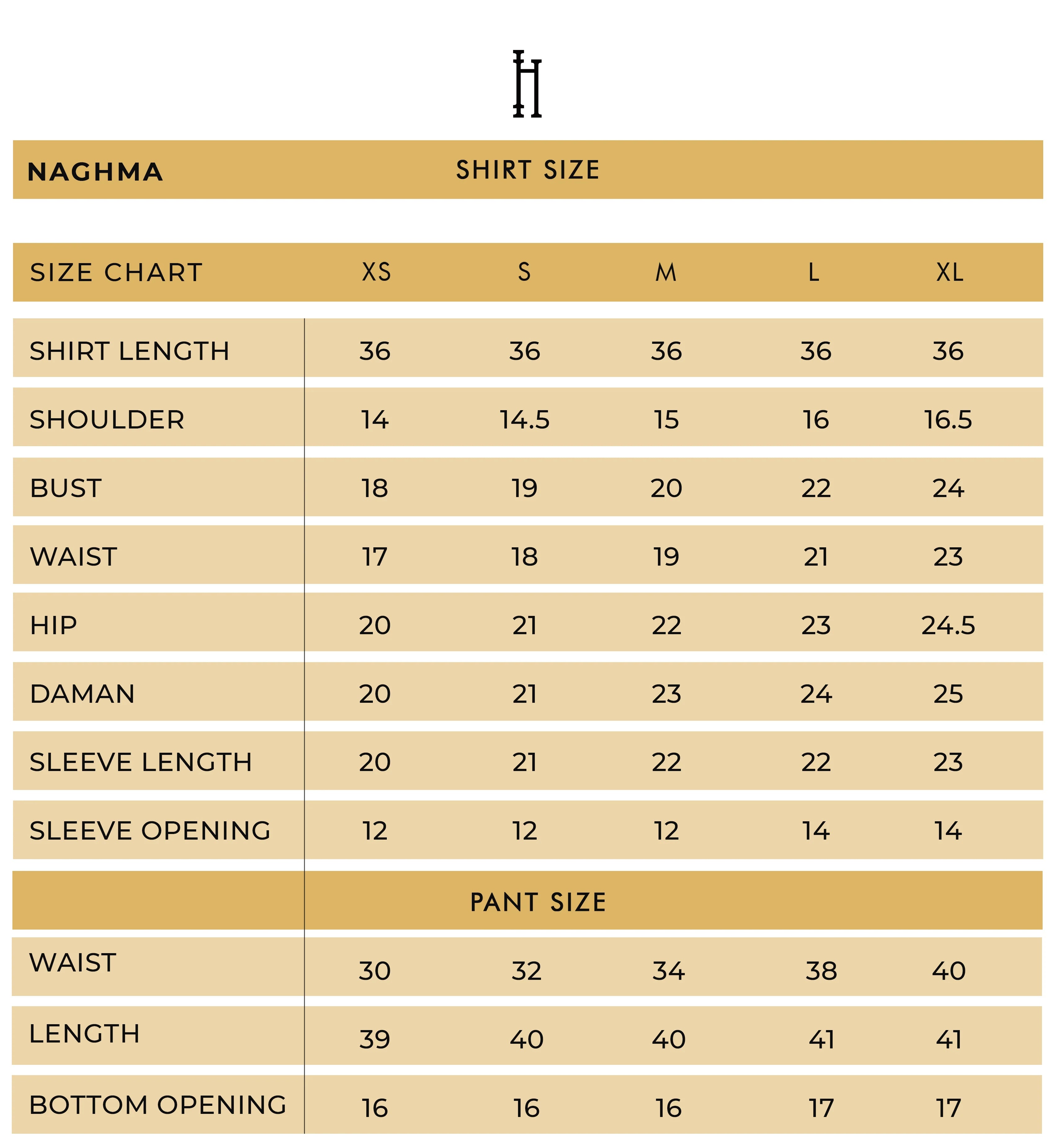 Naghma is an opulent definition of perfection dipped in caramel and coffee shades. An Rawsilk shirt decorated with Gold embroidery and hand work neckline radiating timeless glam. To complete this look, wide Leg pants with embellished border is paired with it. A flowy chiffon dupatta with chan and four side border making this outfit a wholesome treat for your ceremonial outlook.