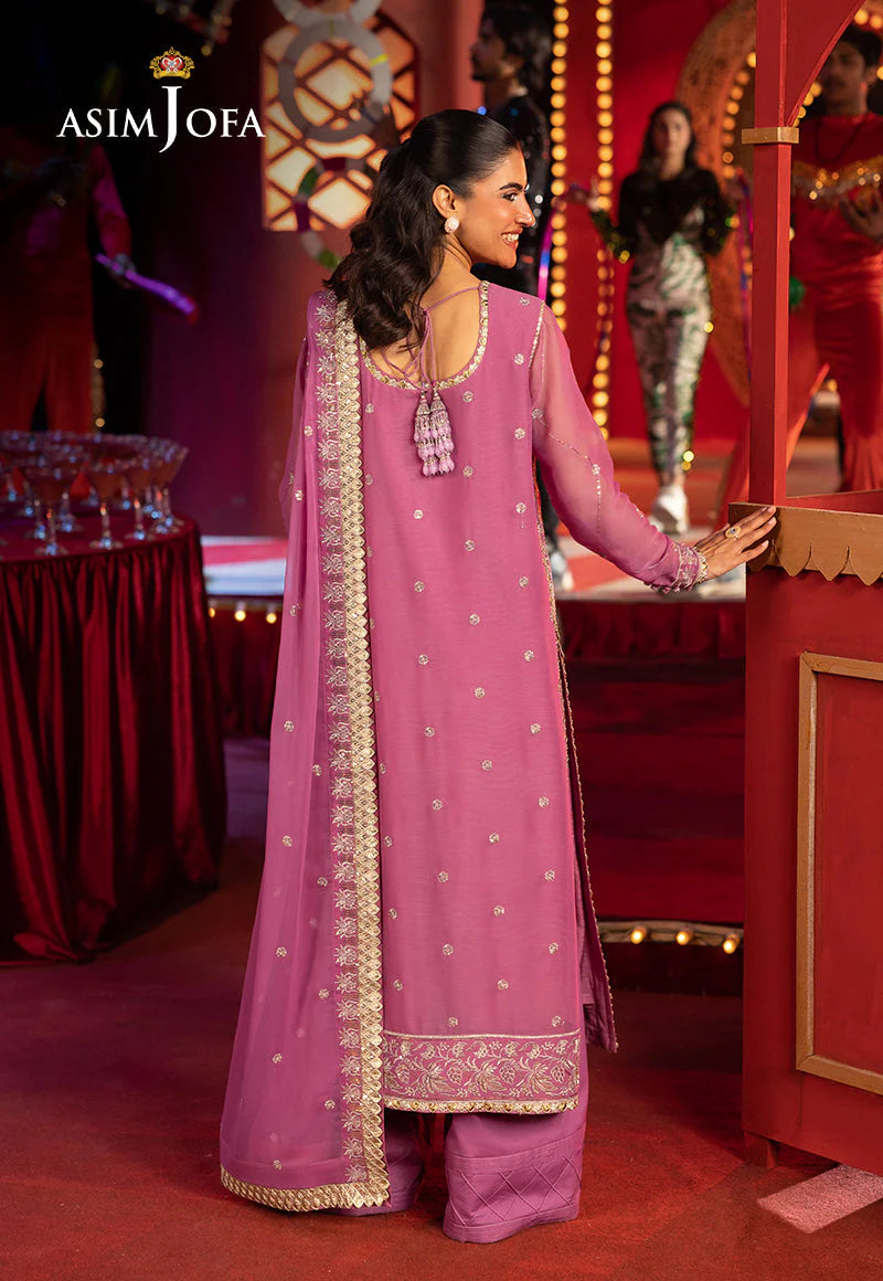 Drenched in the dreamy allure of orchid, this ensemble is a delicate ode to modern femininity. The shirt is adorned with the subtle sheen of champagne zari and luminous 5mm gold sequins that sparkle like morning dew under soft sunlight. Tonal threadwork flows gracefully across the fabric, adding beautiful texture. Paired with a gorgeously embroidered dupatta that enhances the ensemble’s elegance, this look is made for moments where grace takes center stage.