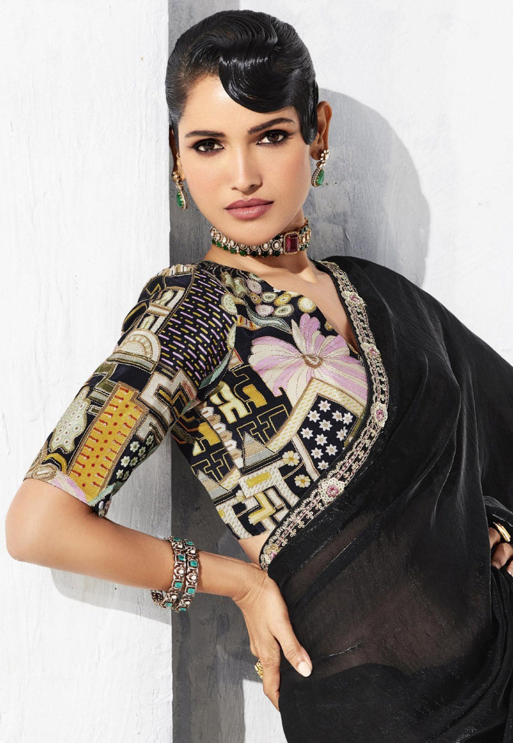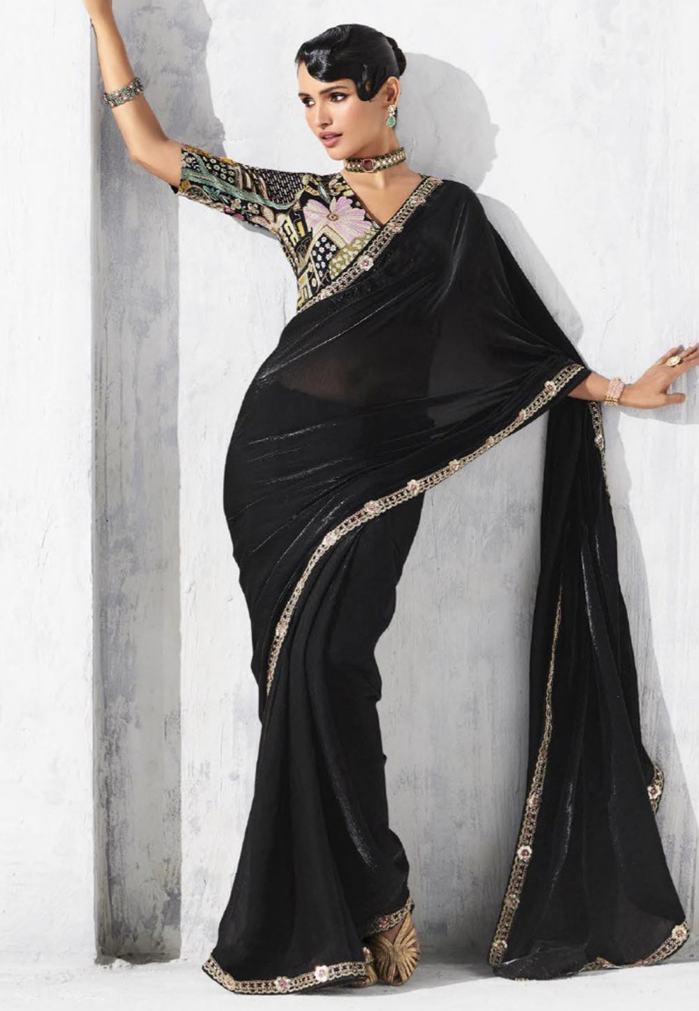 Black Embroidered Festive Saree