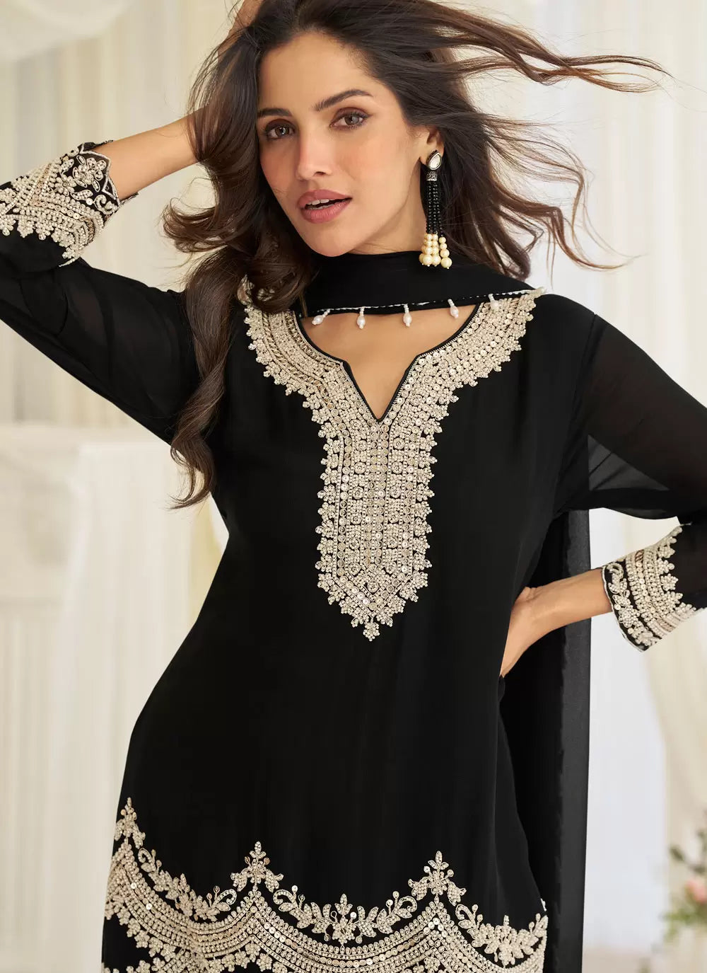 Black Embroidered Pant Style Suit