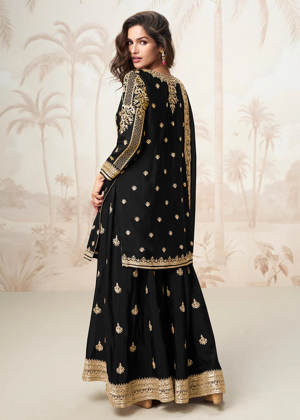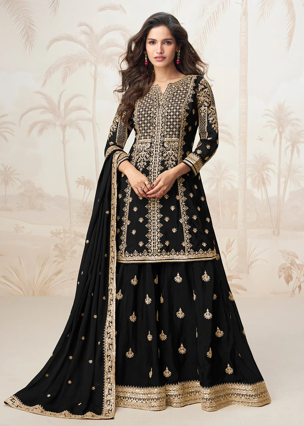 Black Embroidered Sharara Suit