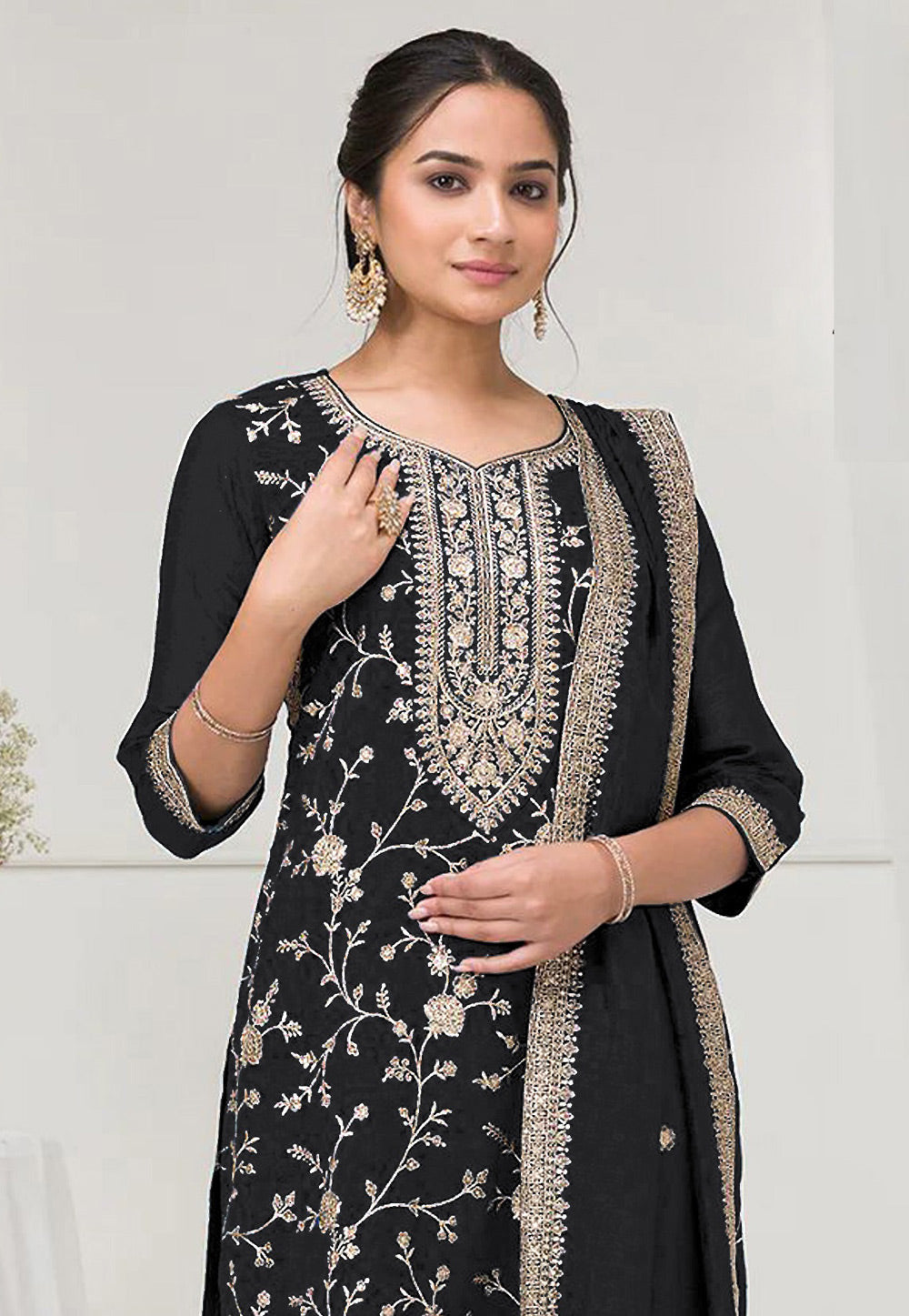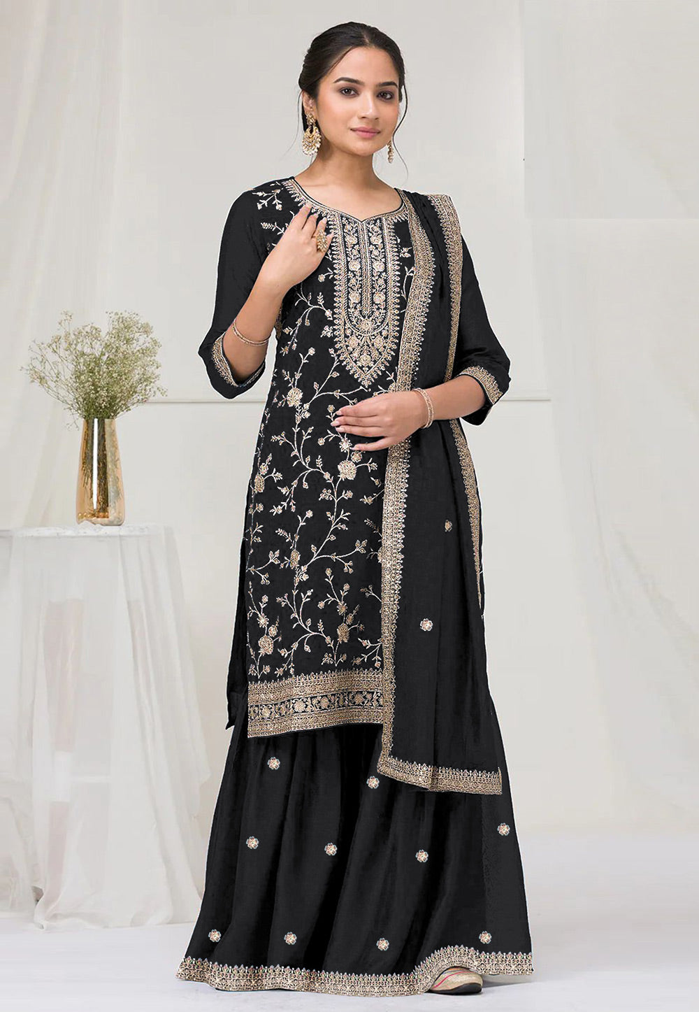 Black Embroidered Sharara Suit