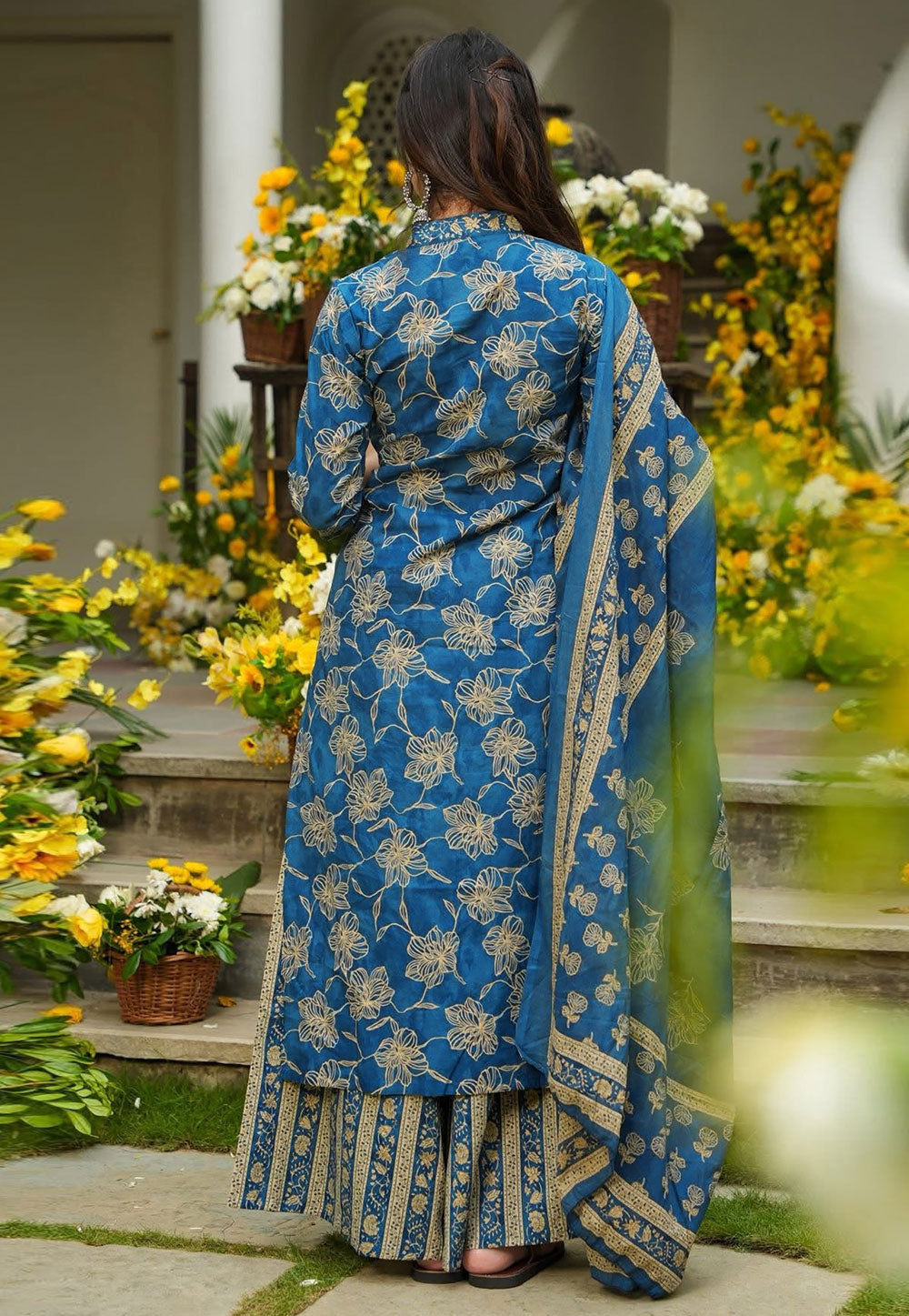 Blue Printed Palazzo Suit
