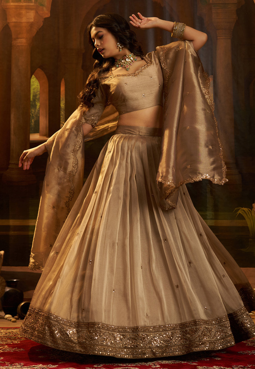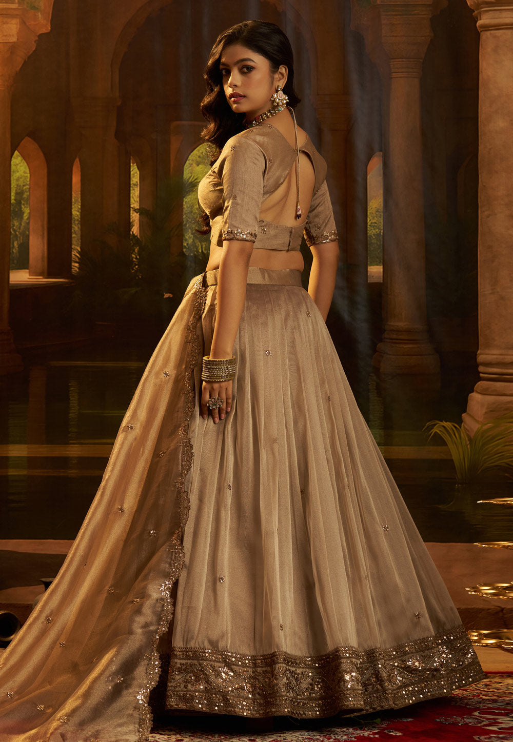 Brown Embroidered Lehenga Choli
