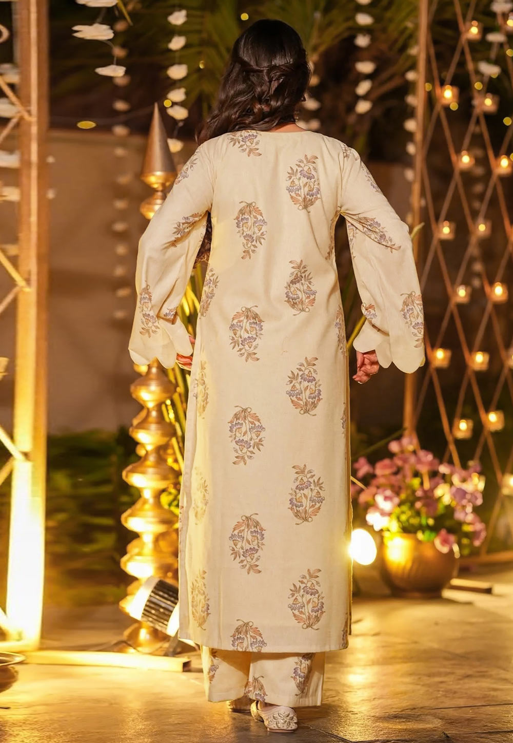 Cream Printed Pant Style Suit
