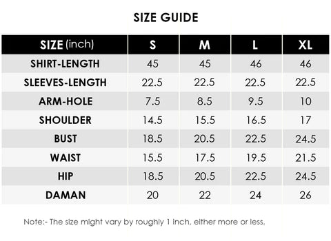 - Sleeves: Same as Shirt (Embroidered)