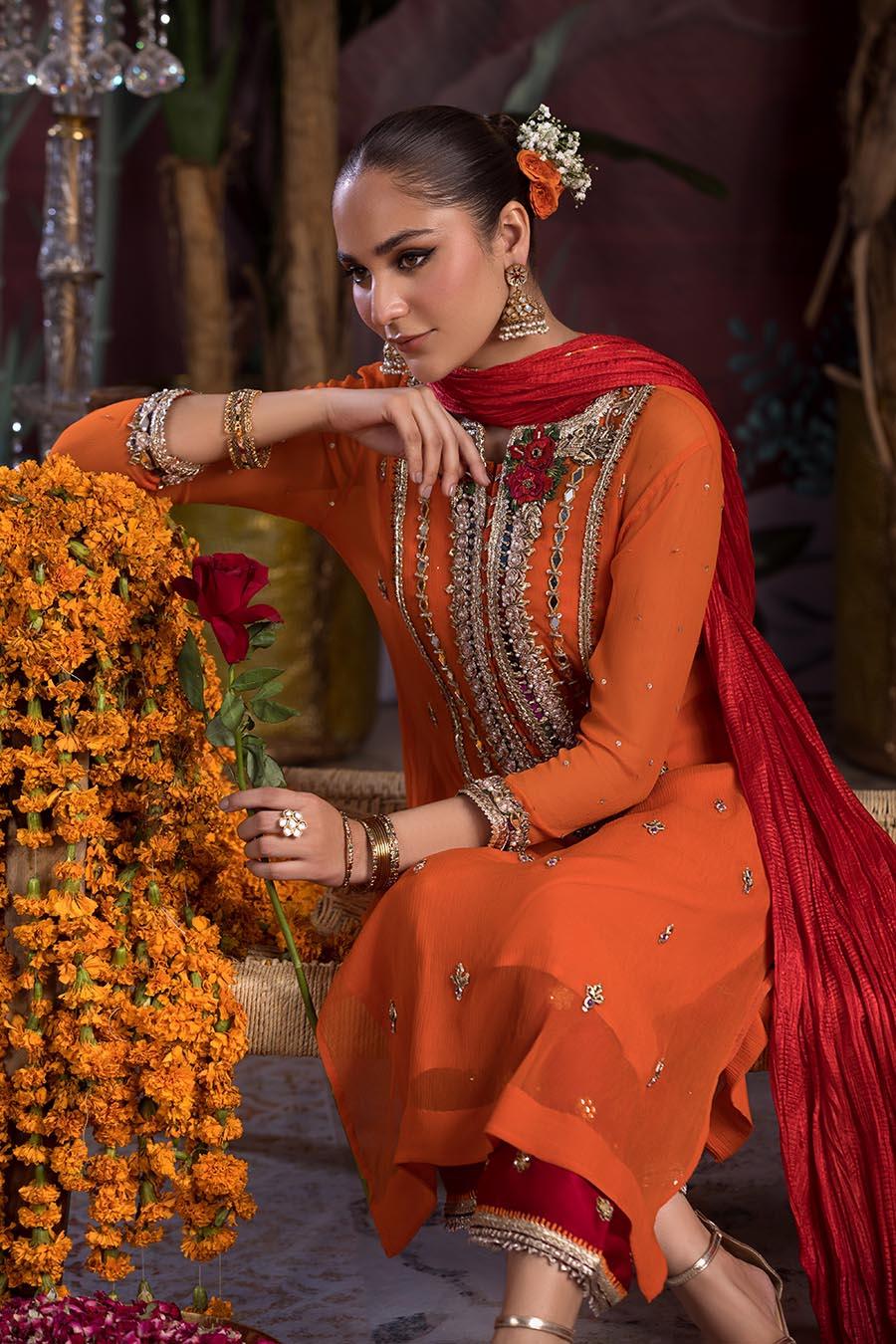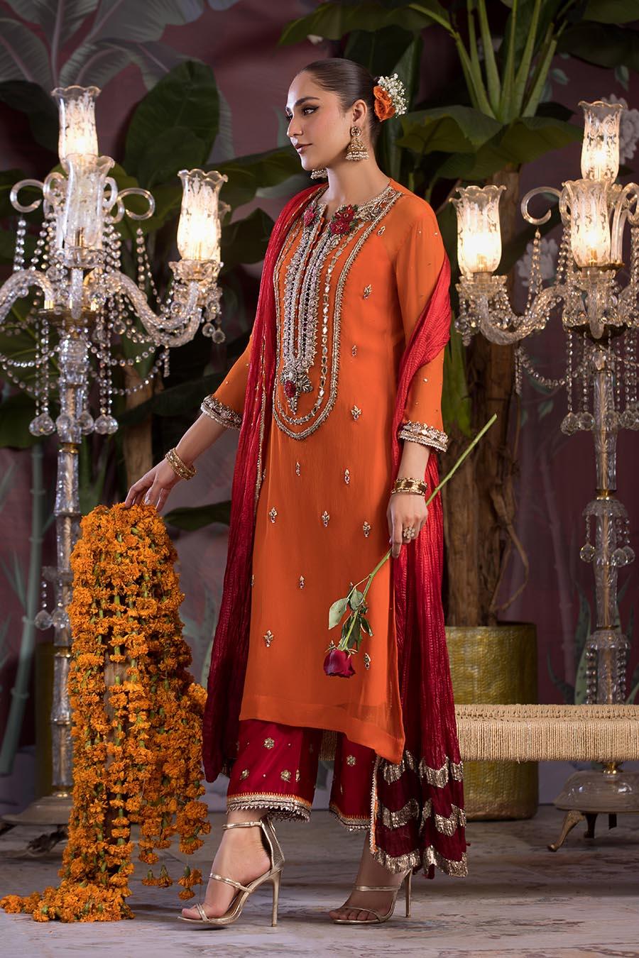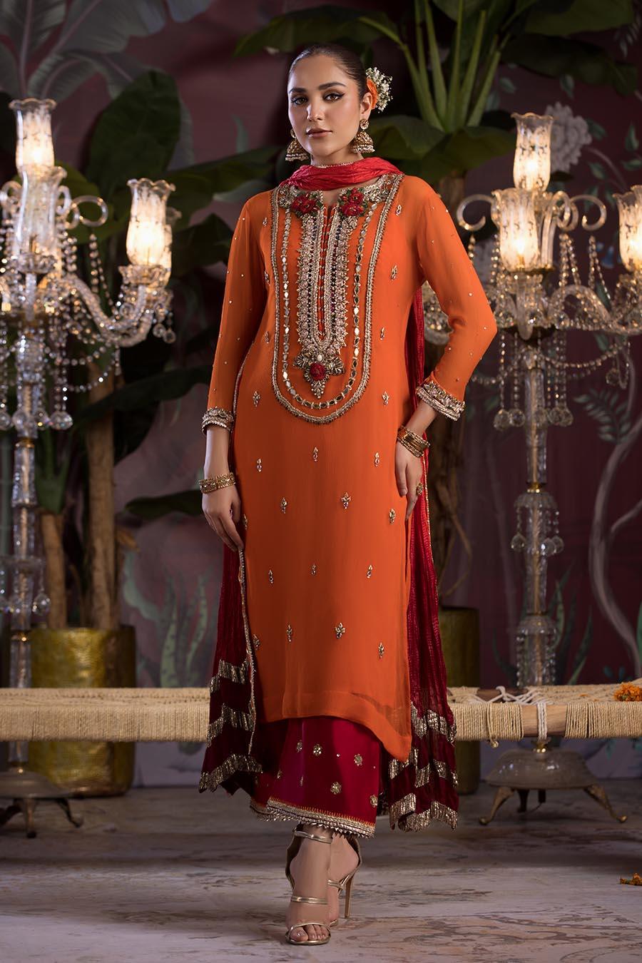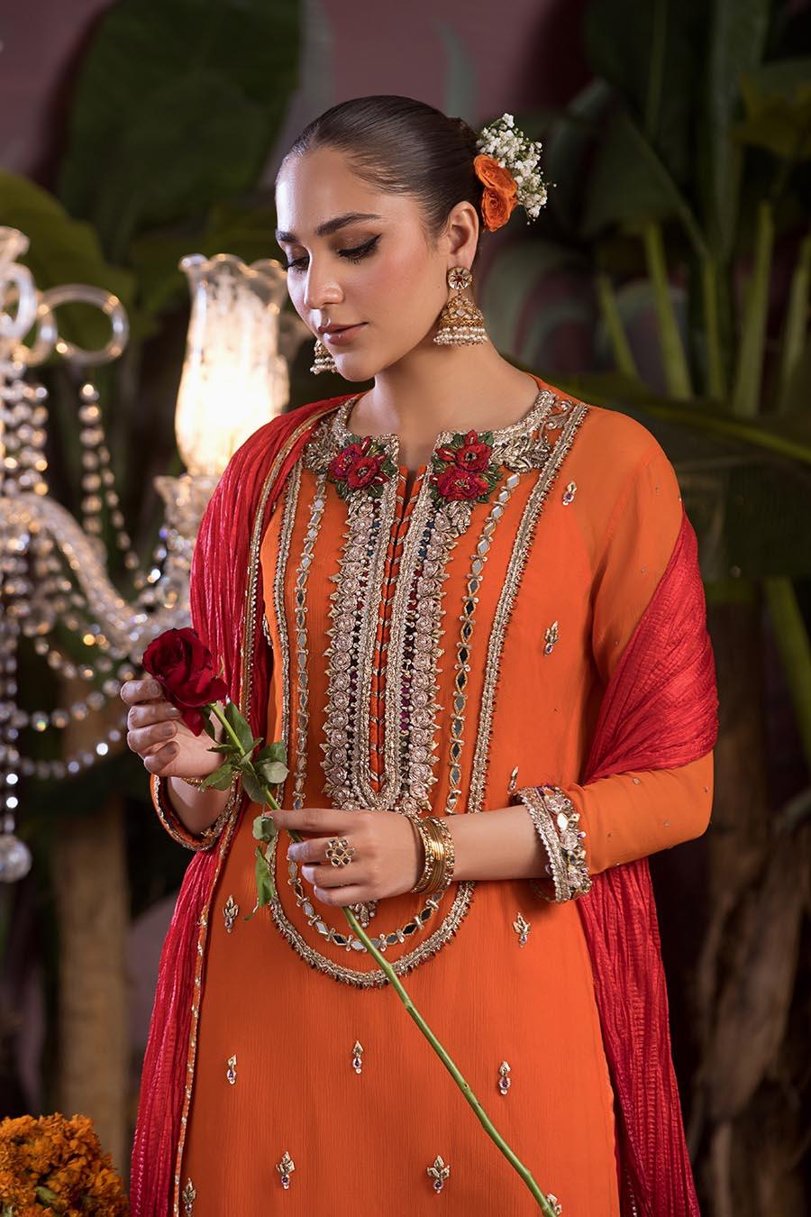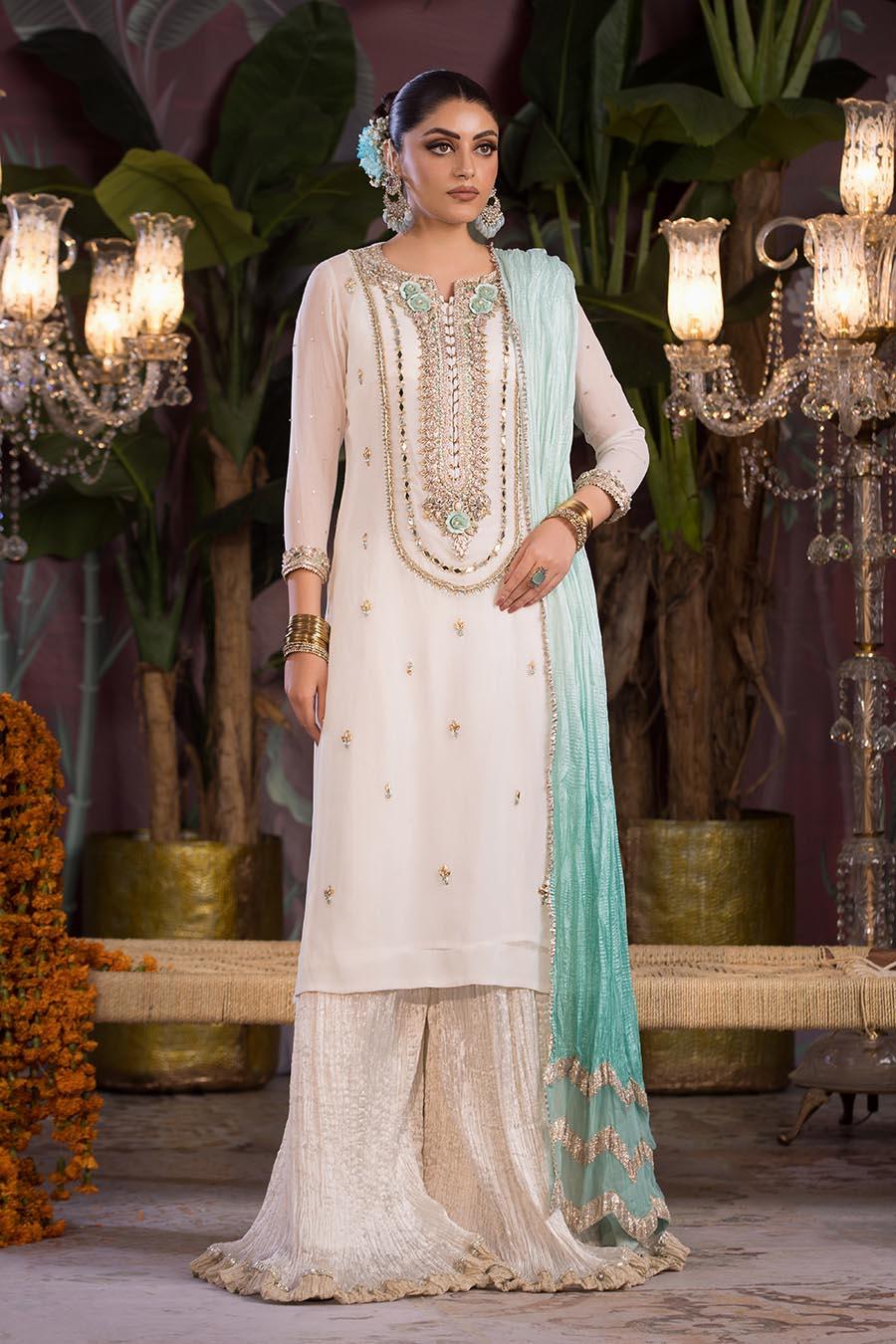 • Shirt: Crinkle Chiffon (Hand Embroidered with Kora, Dabka and Mirror Work)