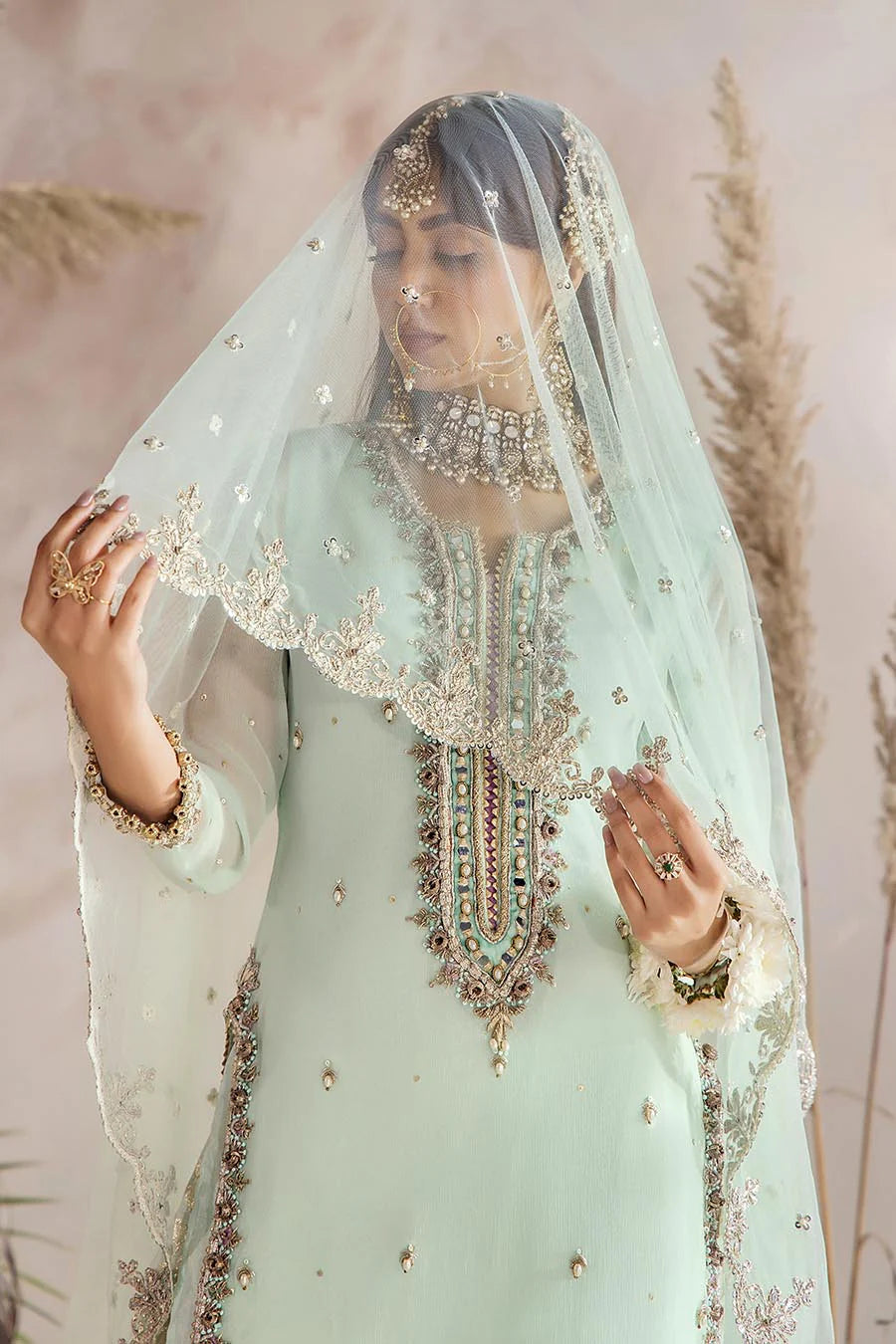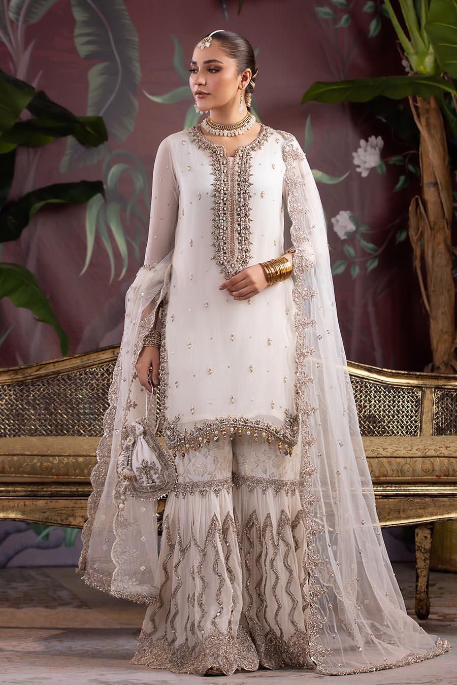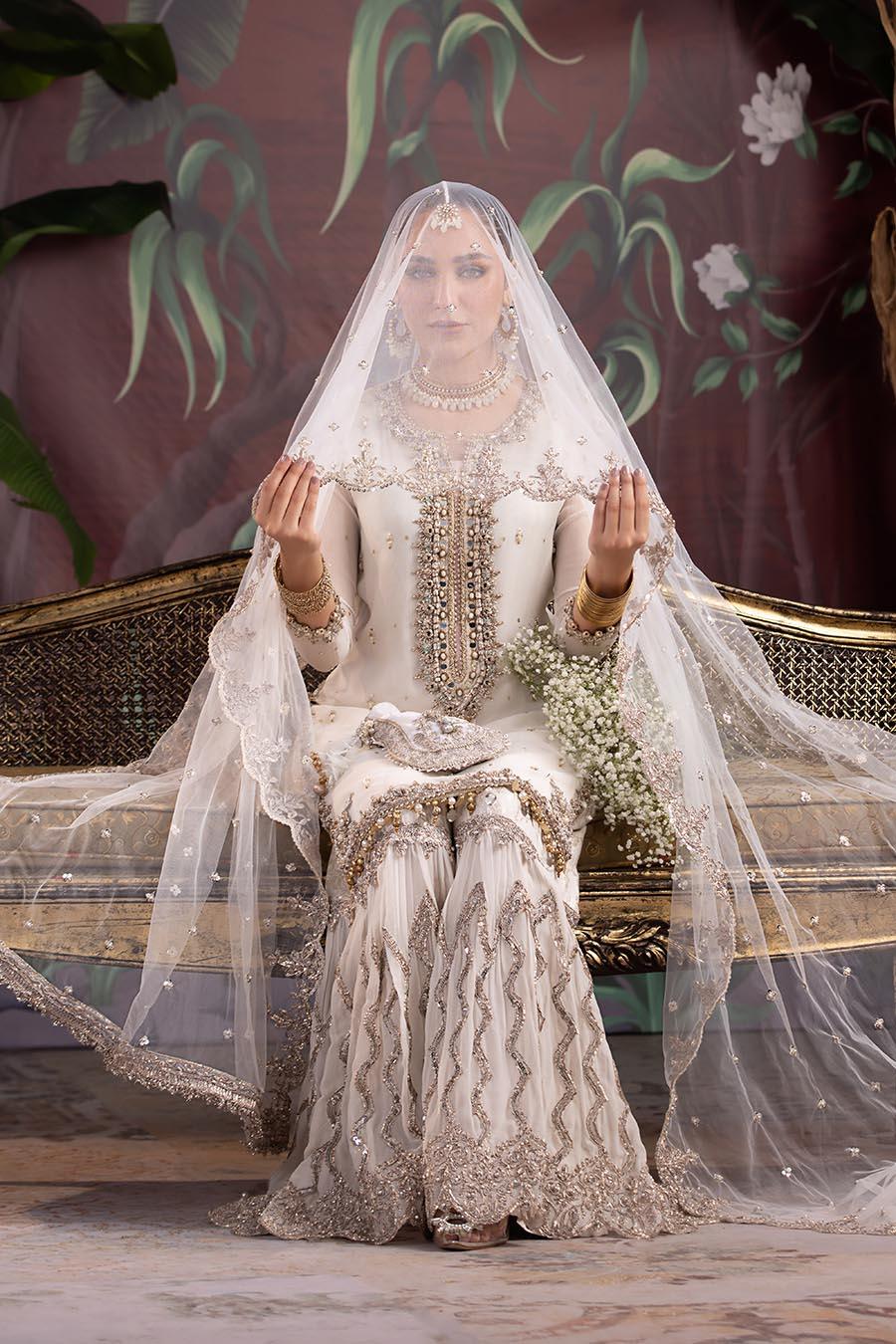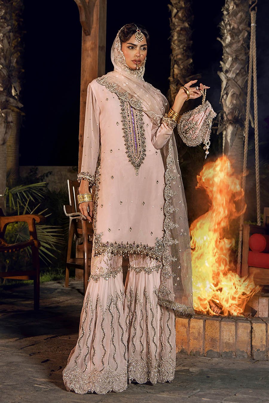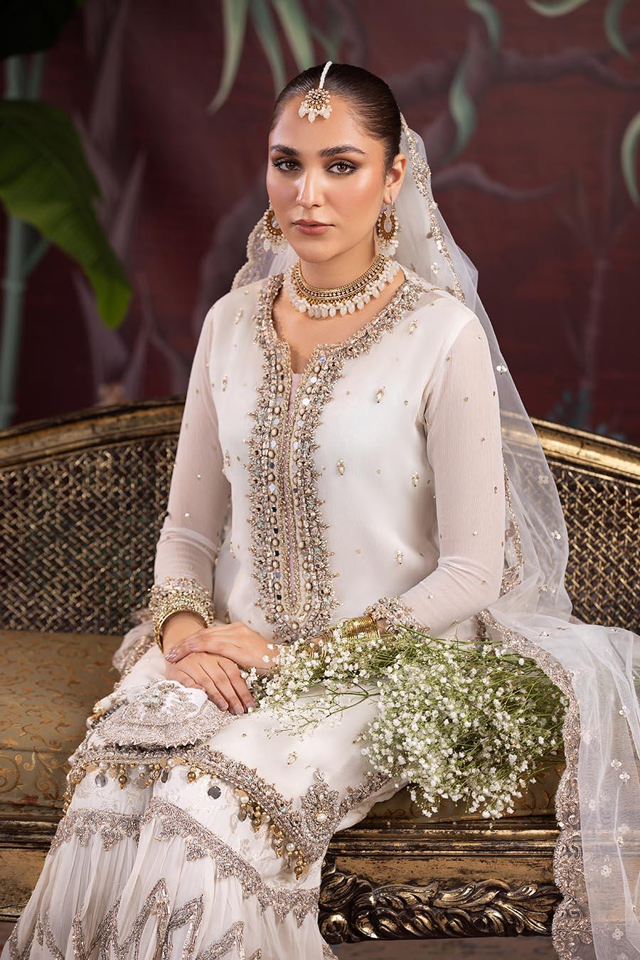 - Shirt: Crinkle Chiffon (Hand Embroidered with Kora, Dabka, Stones and Gotta)