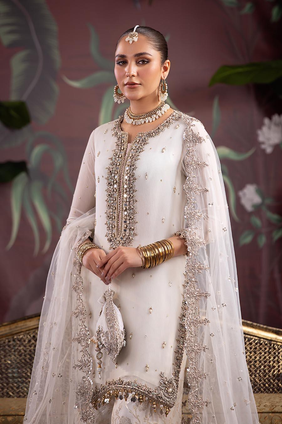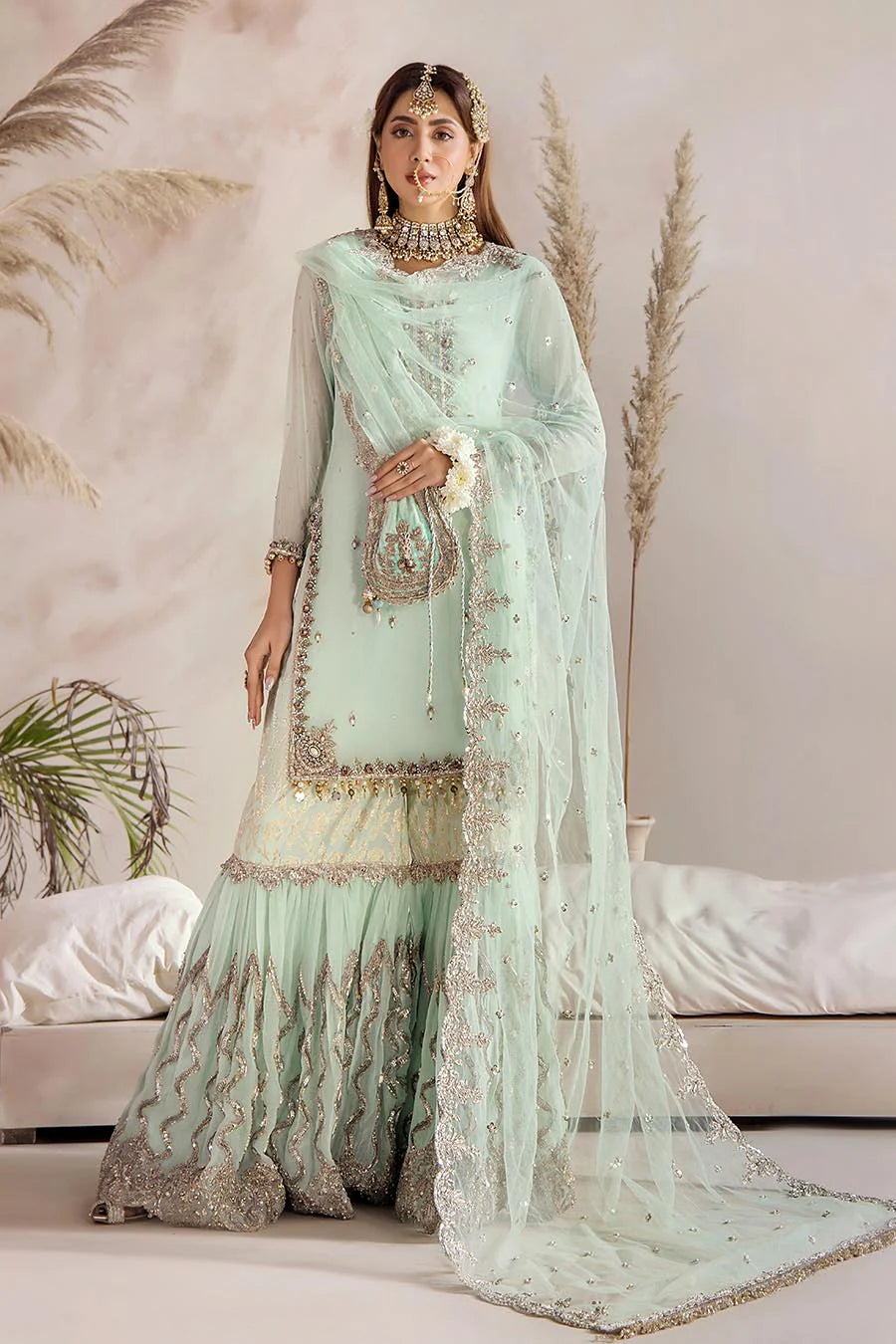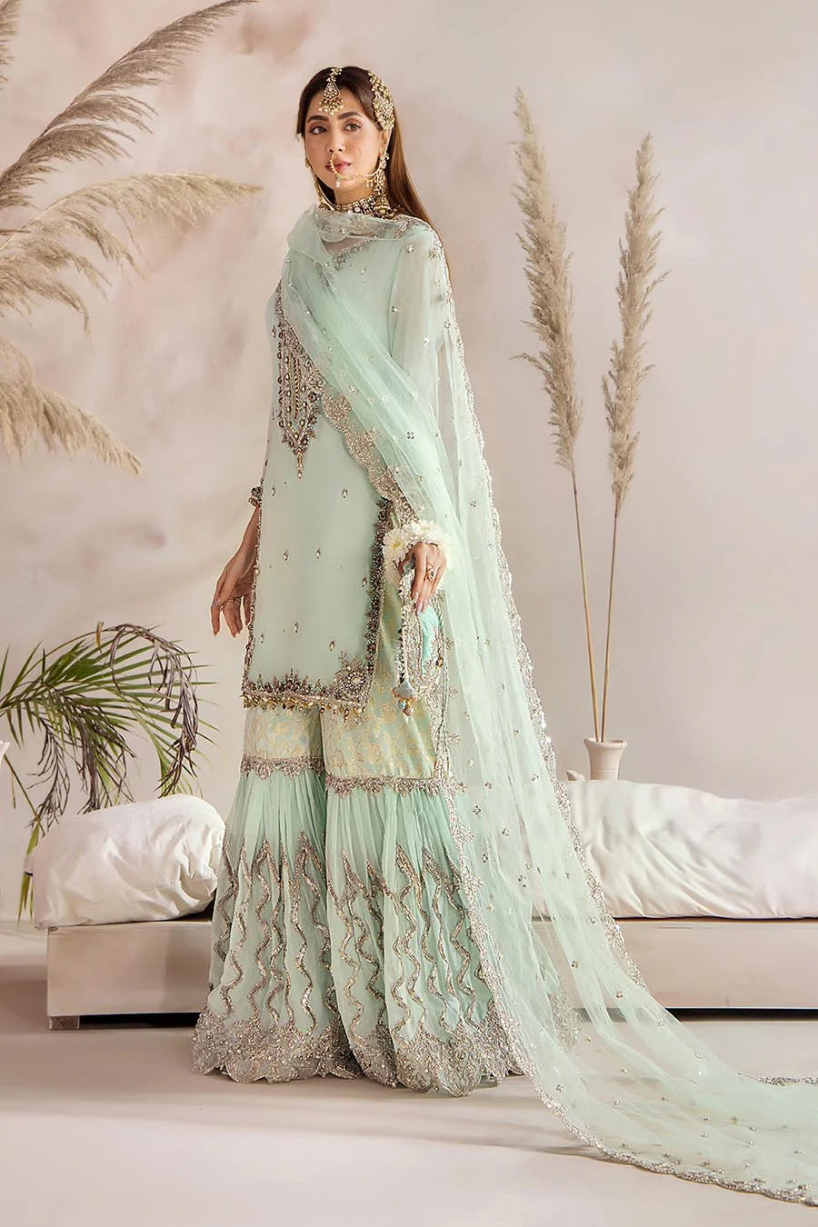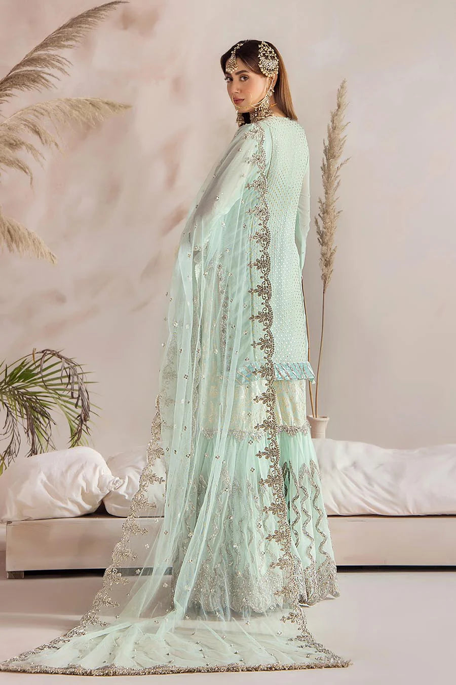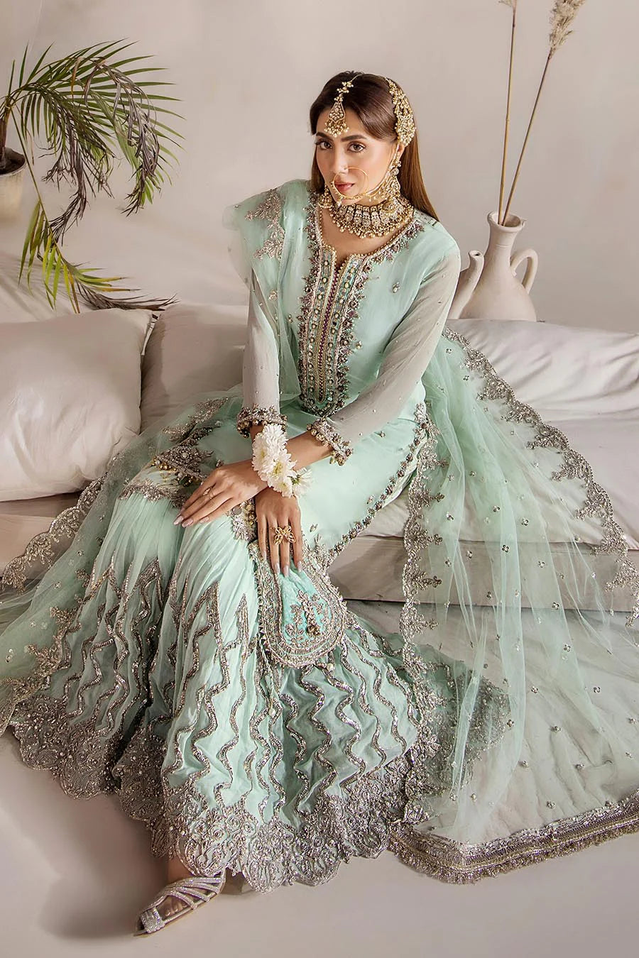 - Shirt: Crinkle Chiffon (Hand Embroidered with Kora, Dabka, Stones and Gotta)