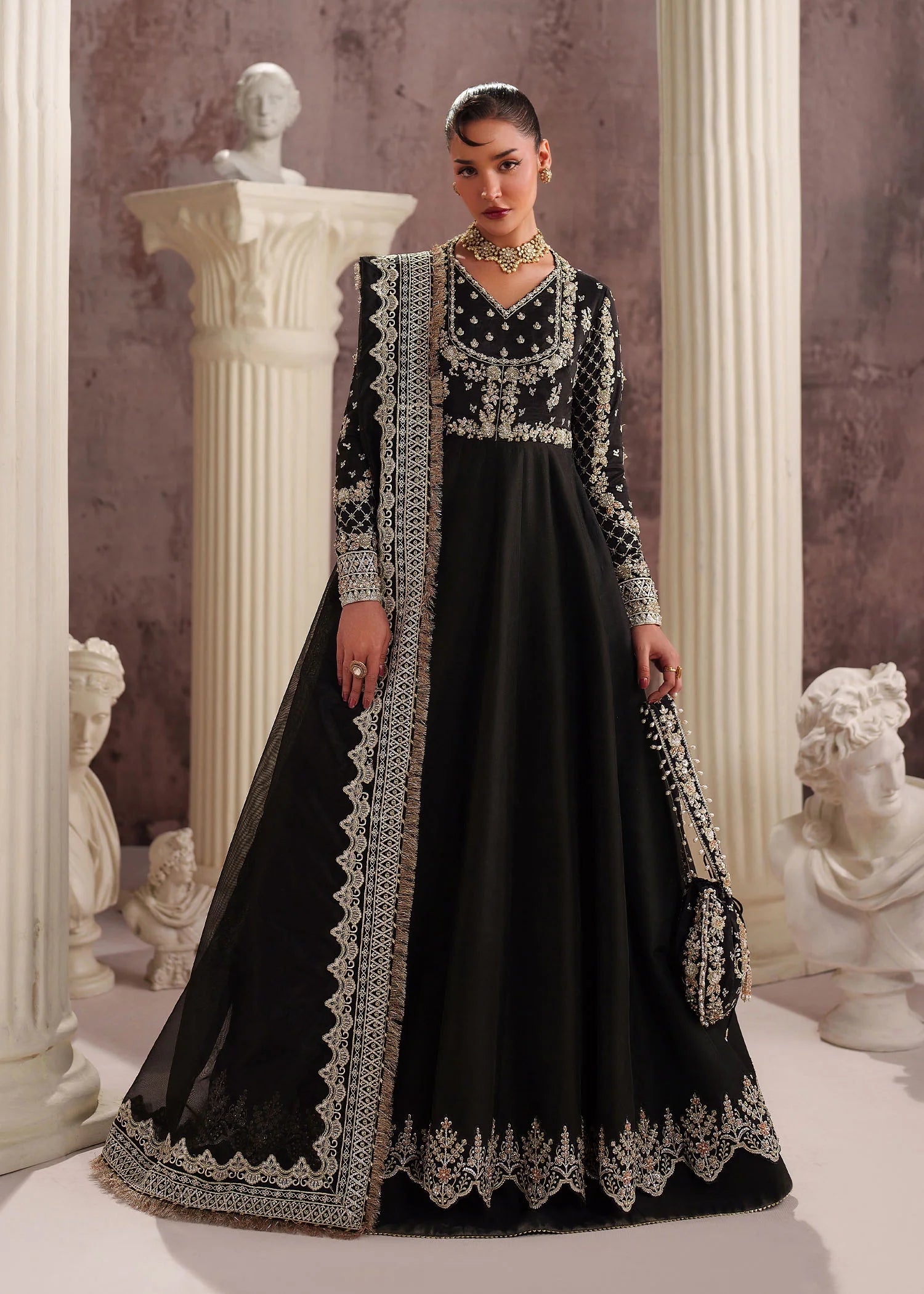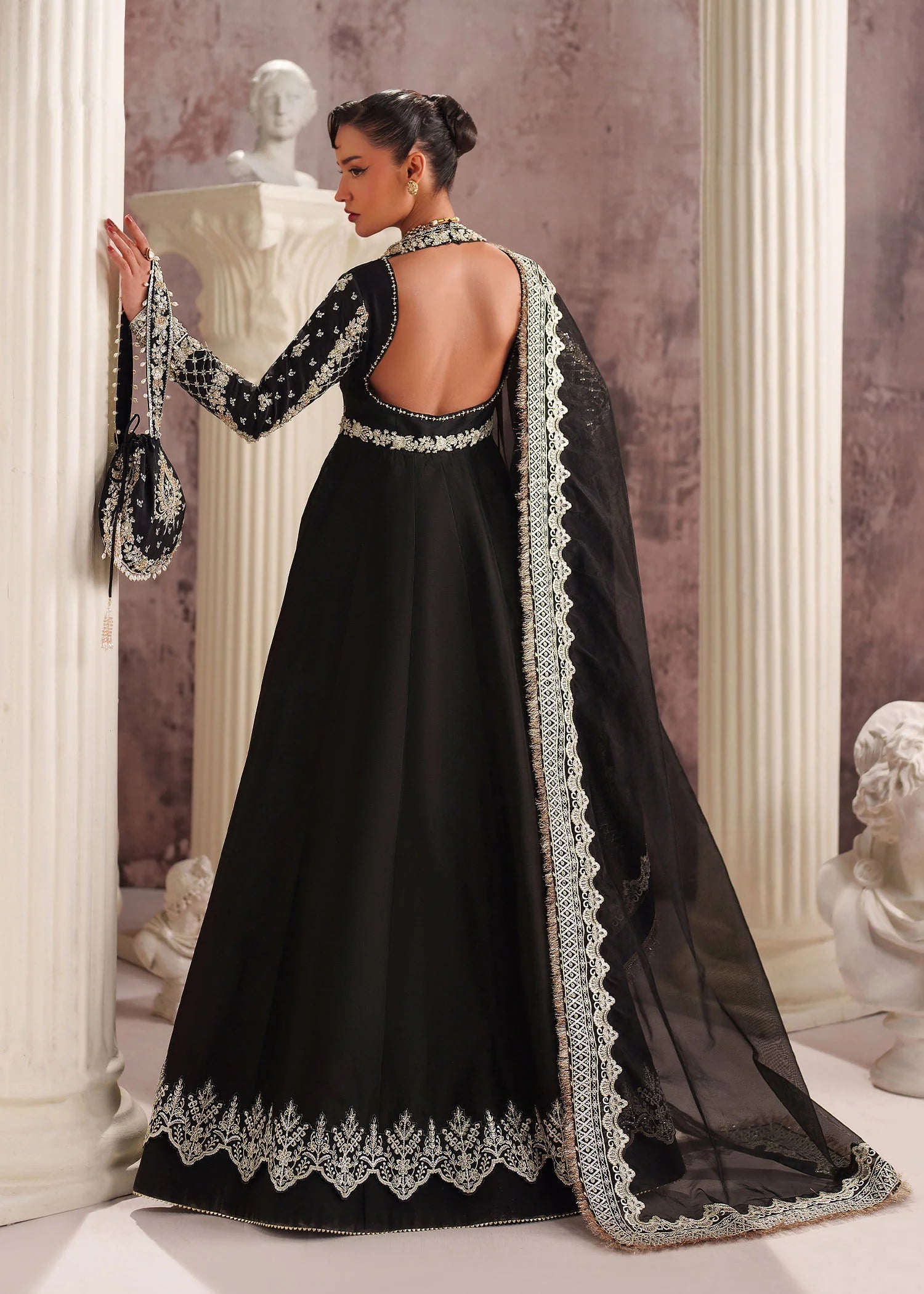 This stunning black ensemble features a tissue silk (korean) Pishwas and Pk Silk Lehnga, adorned with intricate embroidery and sequin beads,Saroski Stones ,crystal and paired with an elegant Organza Embroidered dupatta. Perfect for those who crave luxury and sophistication during the festive season!