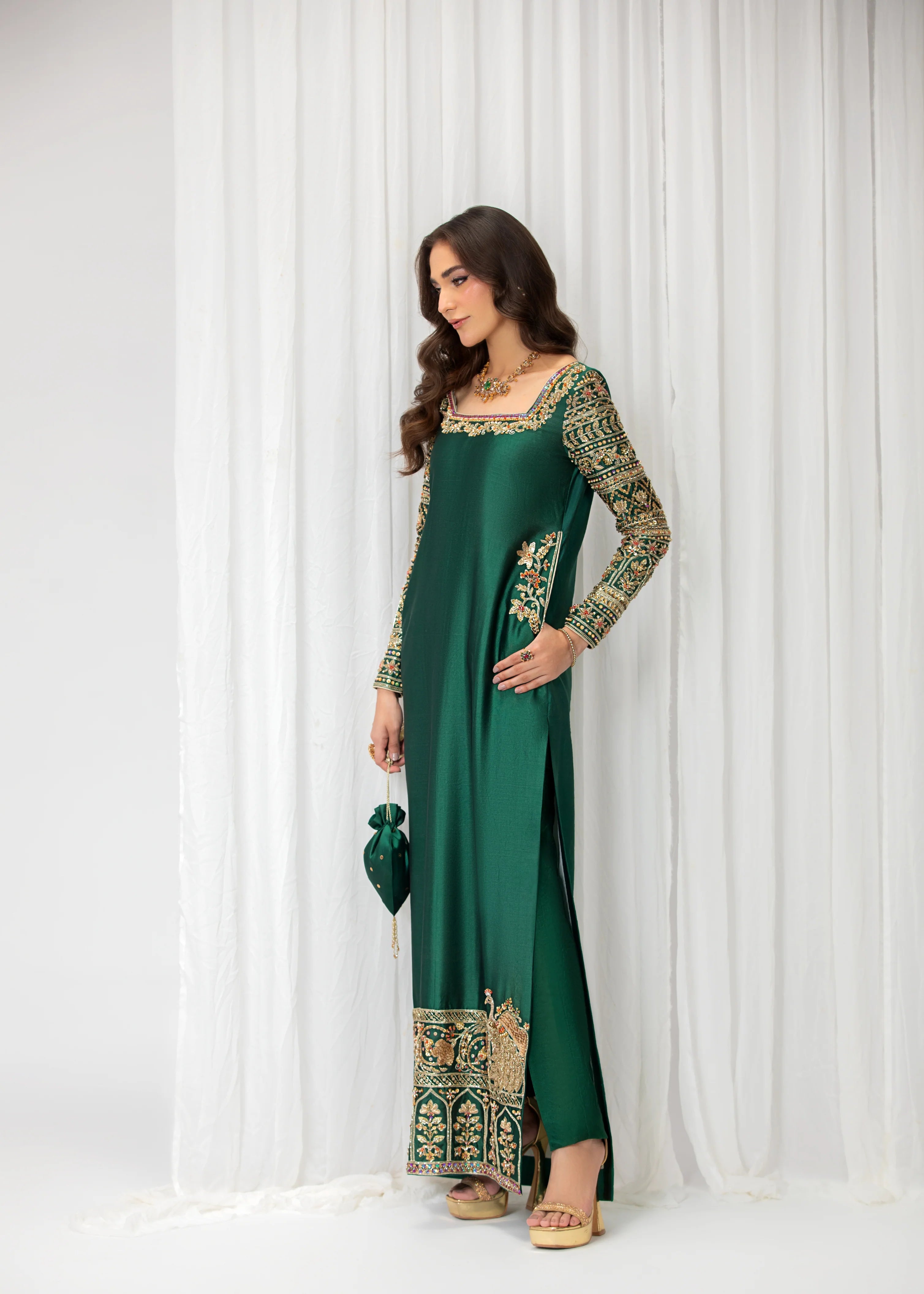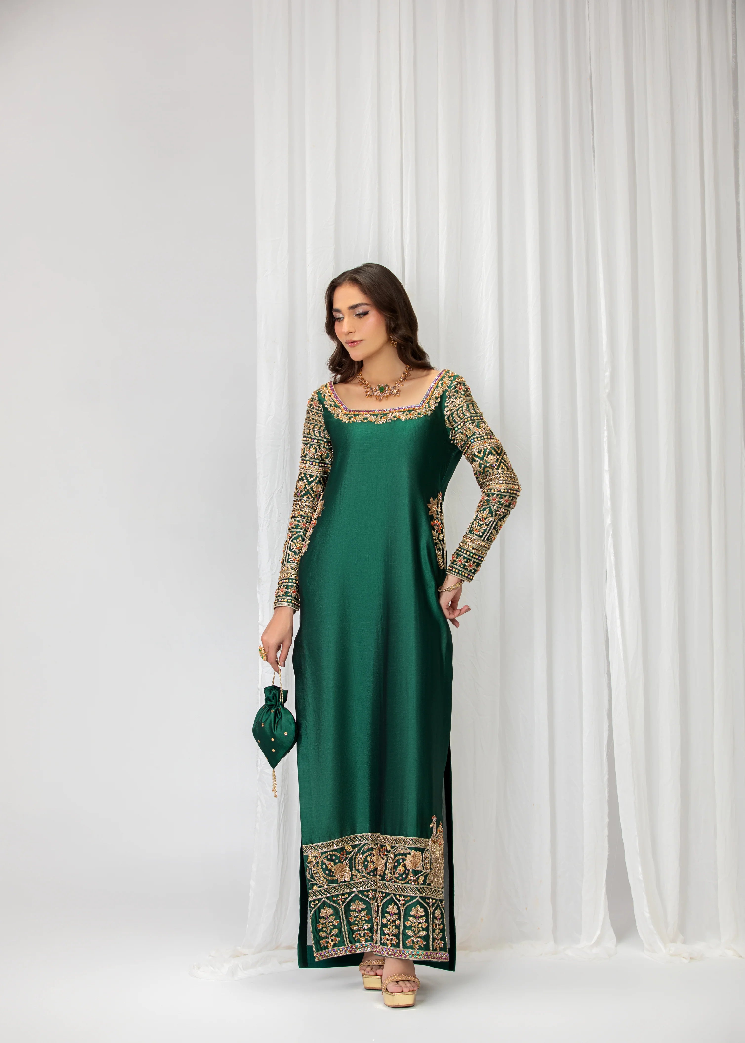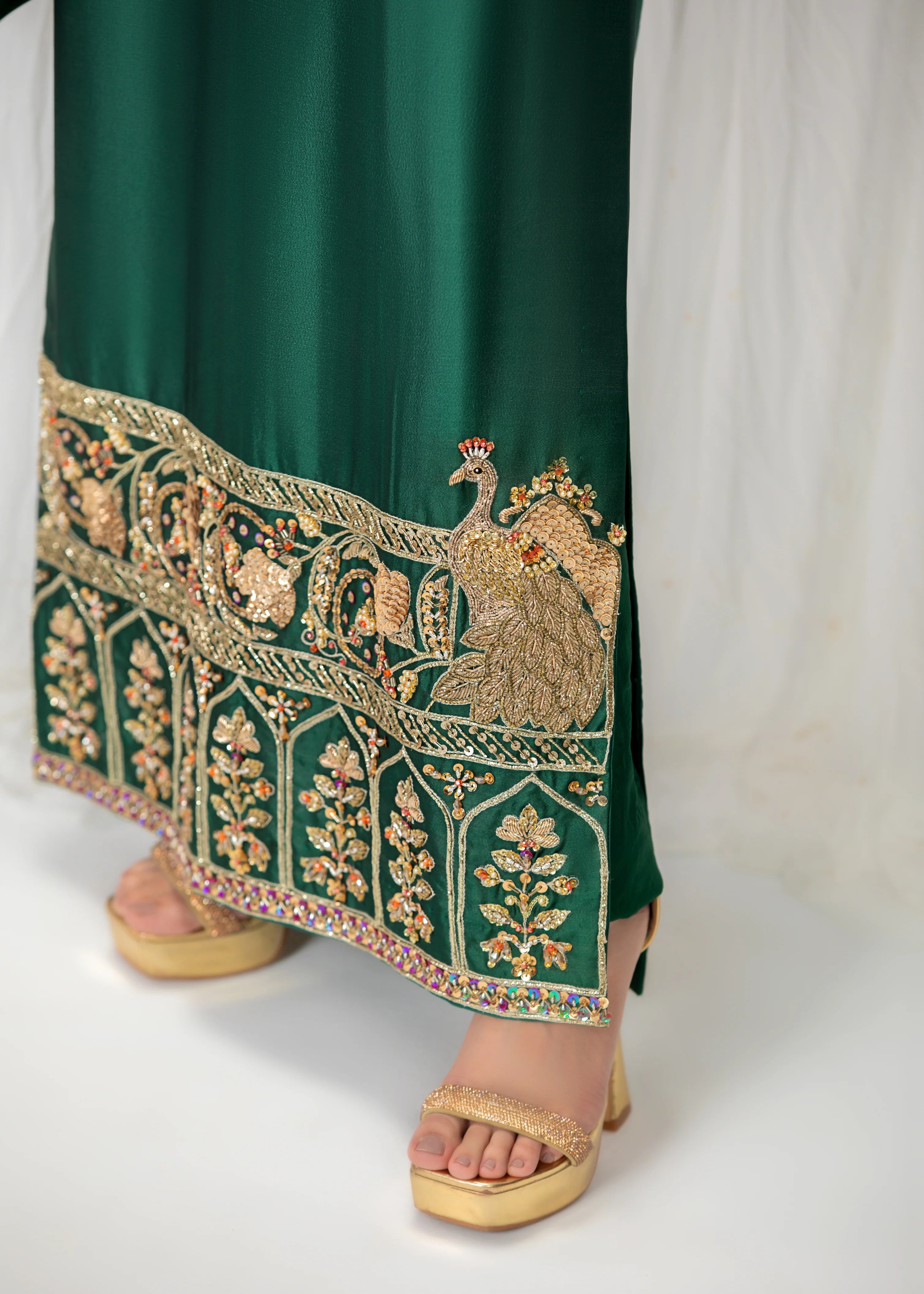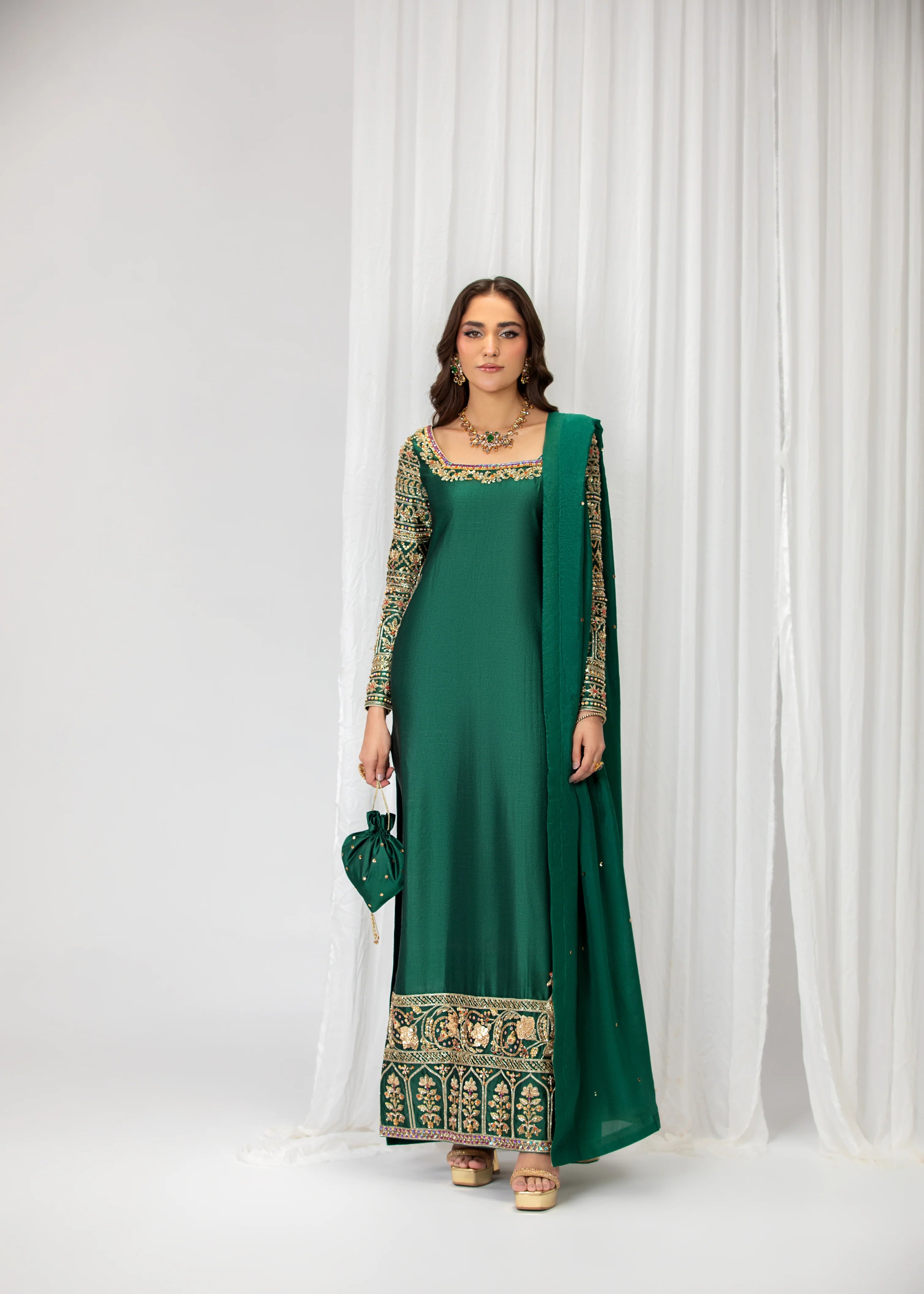 Introducing Mayal, the epitome of elegance and luxury in women's ethnic wear. Our exquisite shirt made from pure tissue silk is meticulously adorned with handwork embellishments of naqshi, dabka along with delicate sequin and multicoloured preals, adding a touch of opulence to your ensemble. Paired with raw silk pant, it creates a perfect harmony of style and craftsmanship. Completing the ensemble is a delicate medium silk dupatta. Mayal is a true symbol of refined style and glamour.