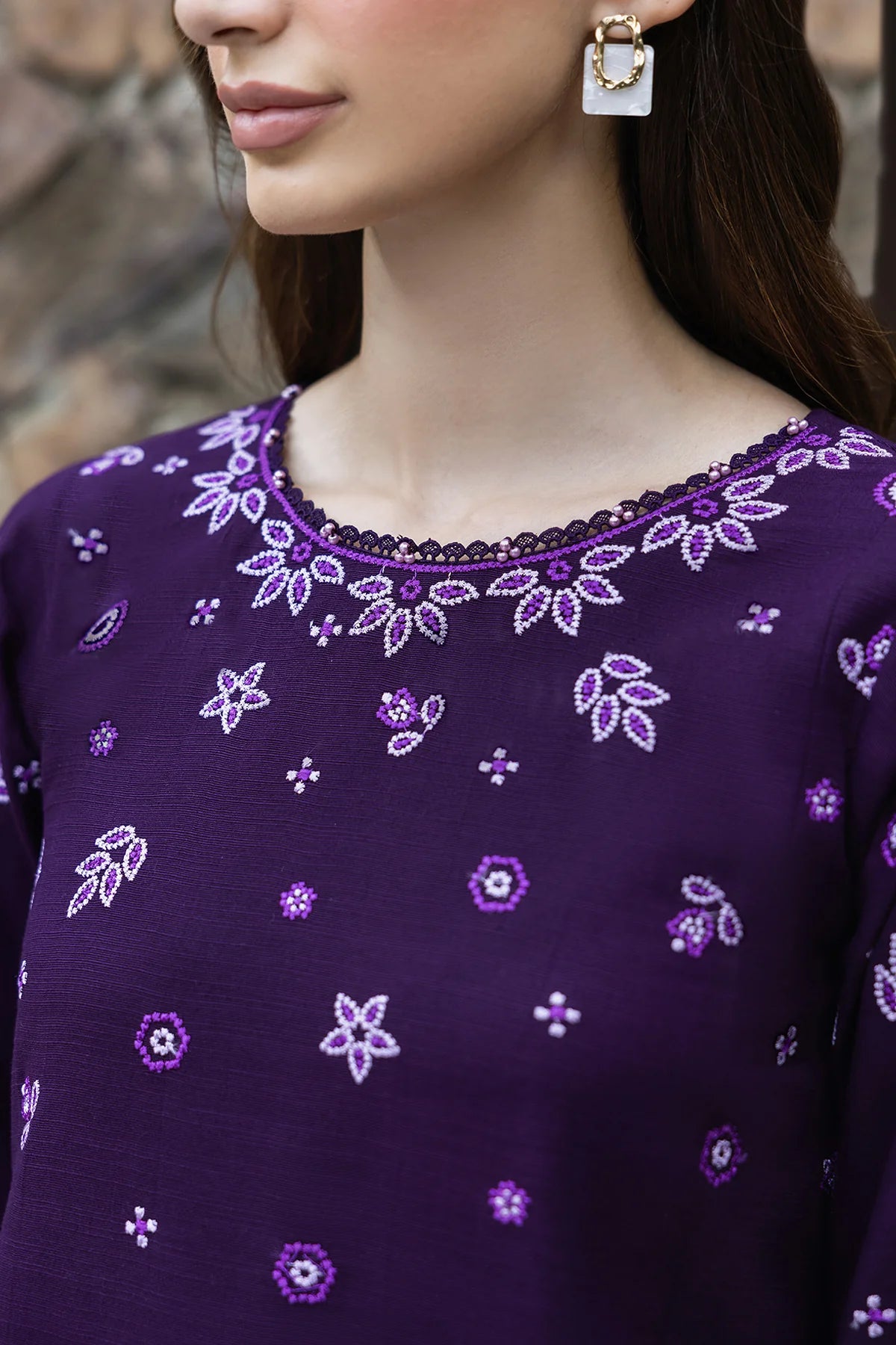 Embroidered Slub Khaddar Front & Back Border (2 Yards)