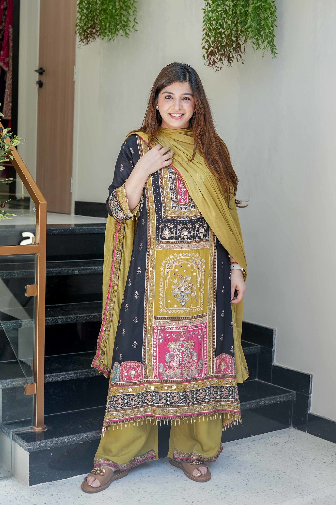 The color of the outfit may vary due to the lighting effect used in the photography.