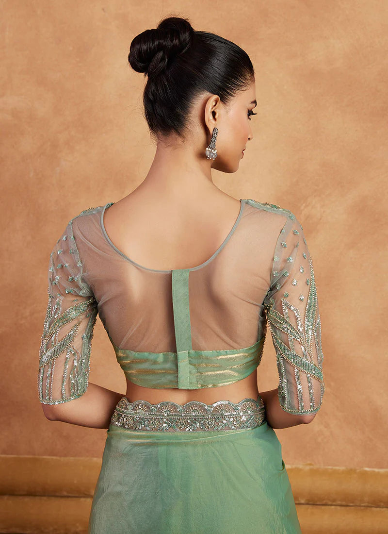 Green Embroidered Saree features a silk saree with embroidery. Comes with silk embroidered blouse.
