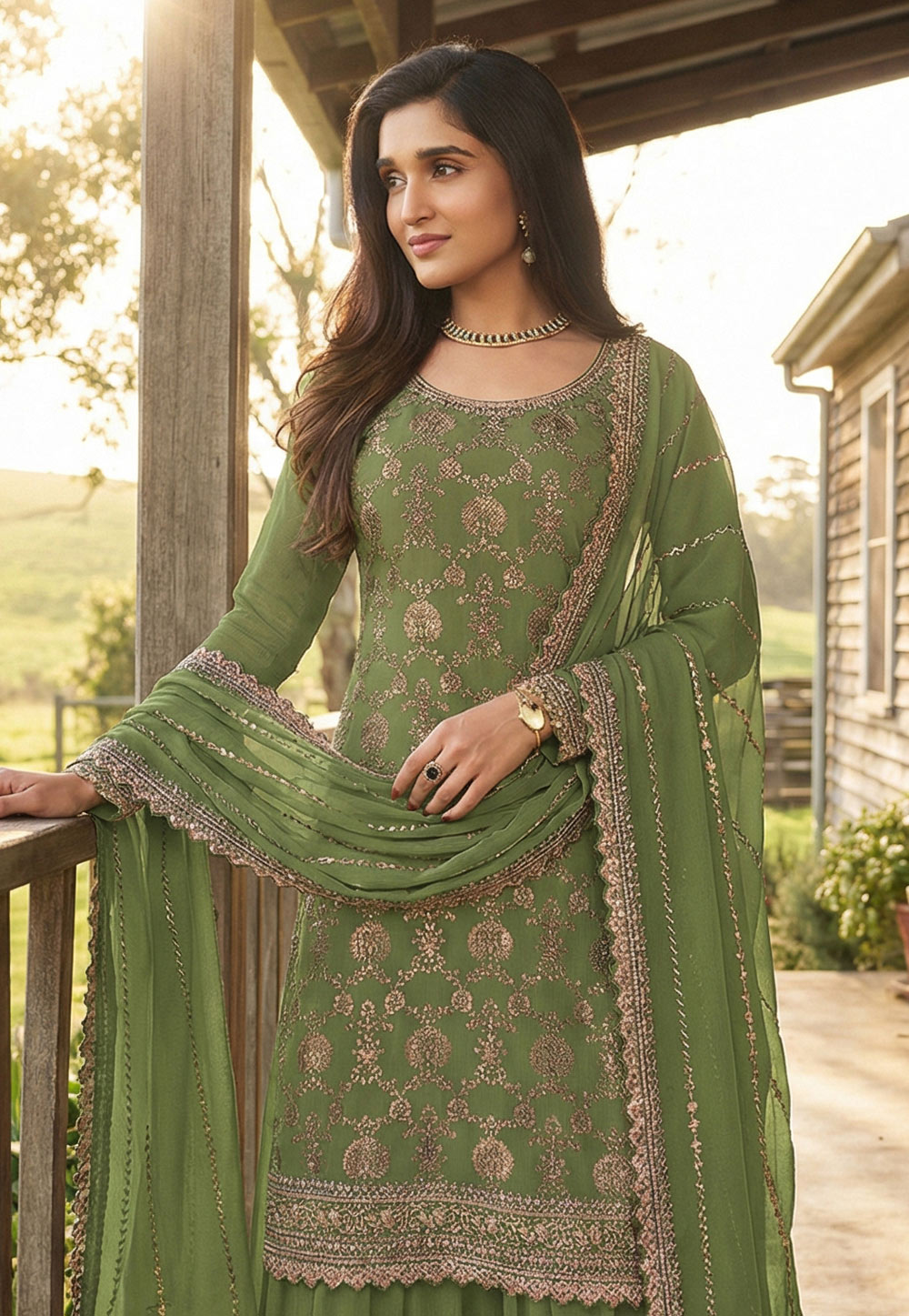 Green Embroidered Sharara Suit
