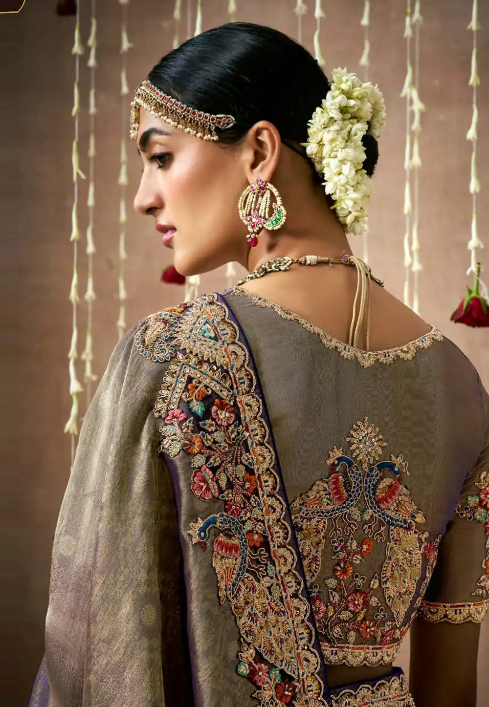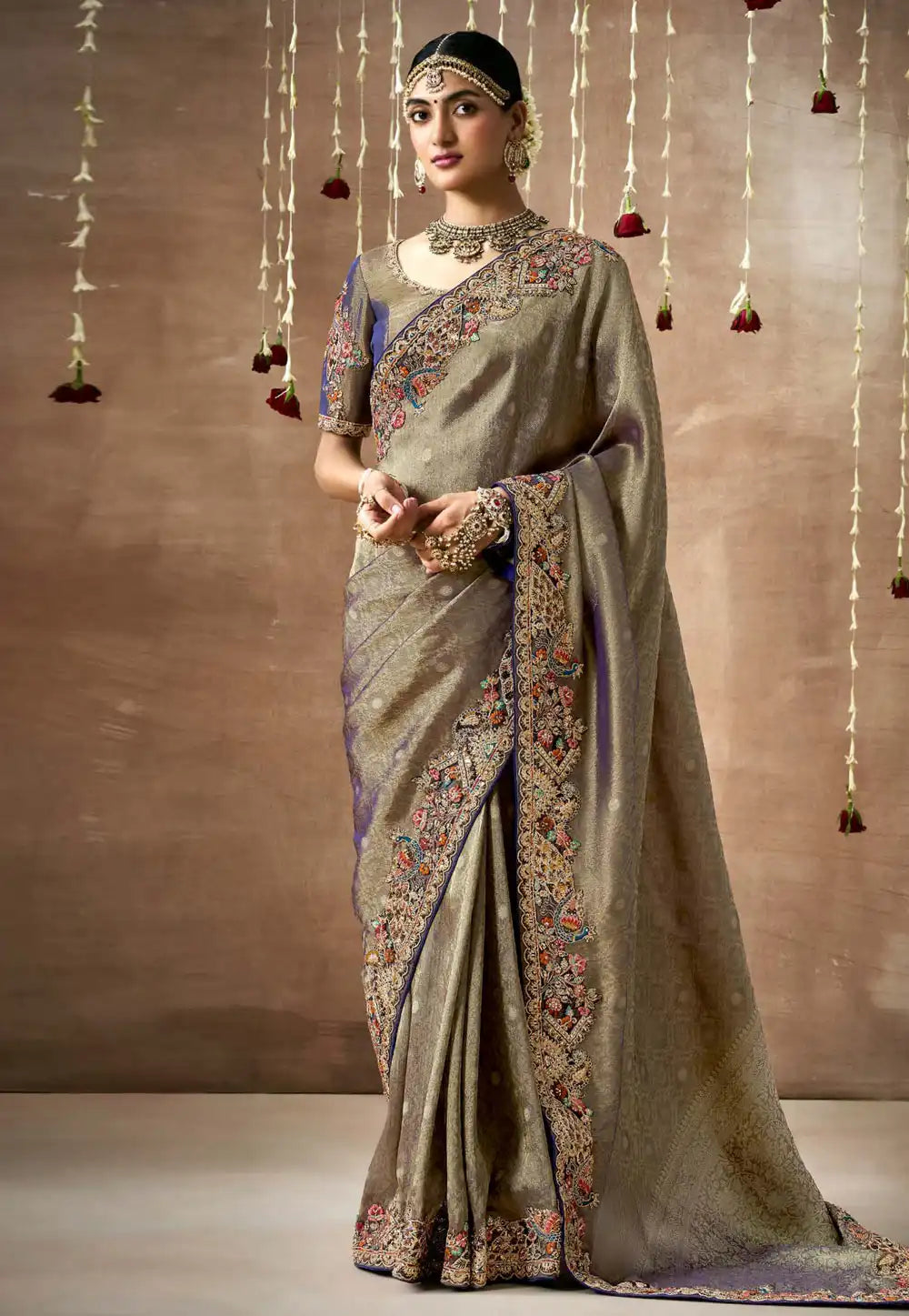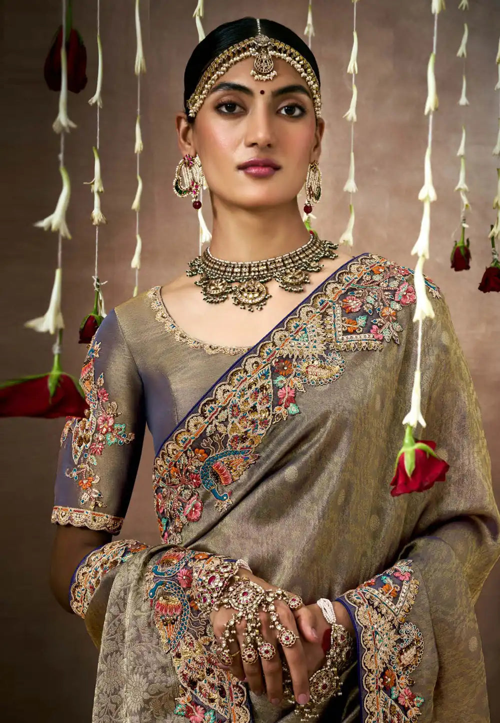 Grey Embroidered Wedding Saree