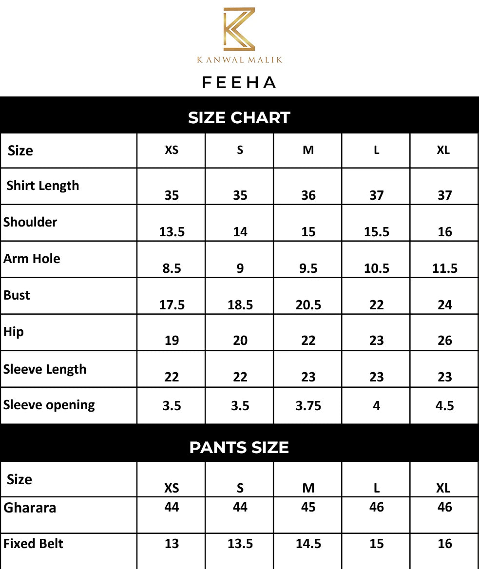Exuding regal elegance, this organza ensemble is a masterpiece of artistry and detail. The shirt features intricately embroidered panels and an elongated neckline, layered over a fully embellished bustier that adds depth and grandeur. Colored charmeuse piping accents the design with a subtle pop, while the tie-dye dupatta, adorned with an ada spray and finished with heavily scalloped borders, lends a touch of modern charm. Completing the look, the traditional gharara showcases an elaborate jaal at the hem with a delicate spray above the gota, creating a harmonious balance of tradition and sophistication.