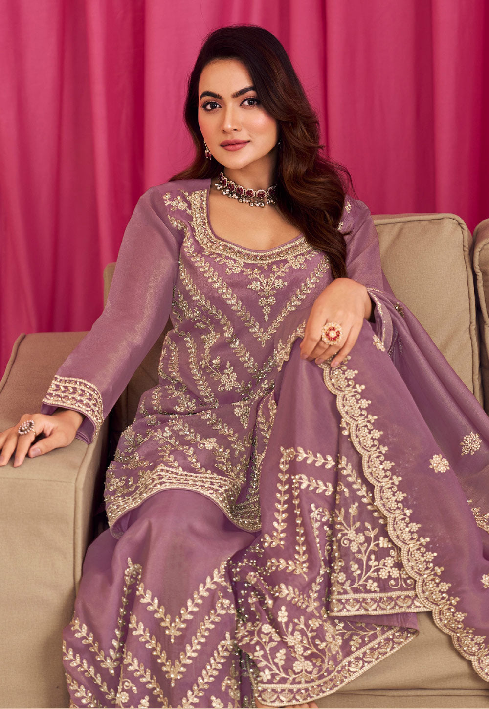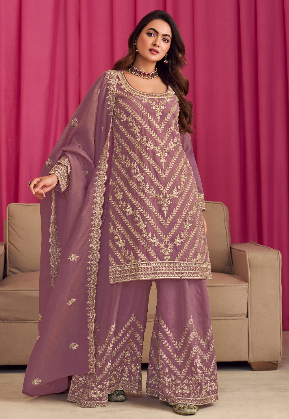 Lavender Embroidered Palazzo Suit
