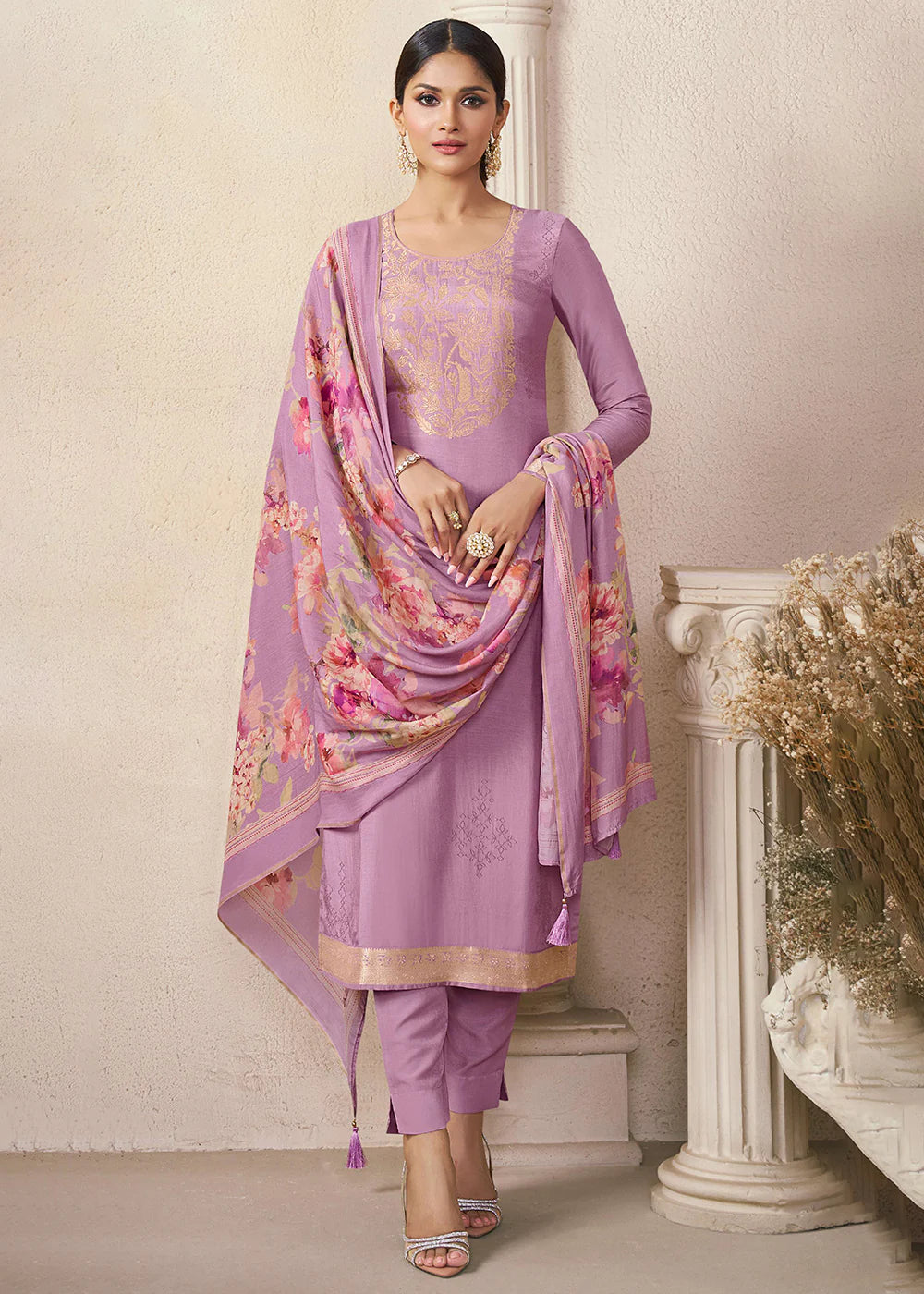 Lavender Embroidered Pant Suit