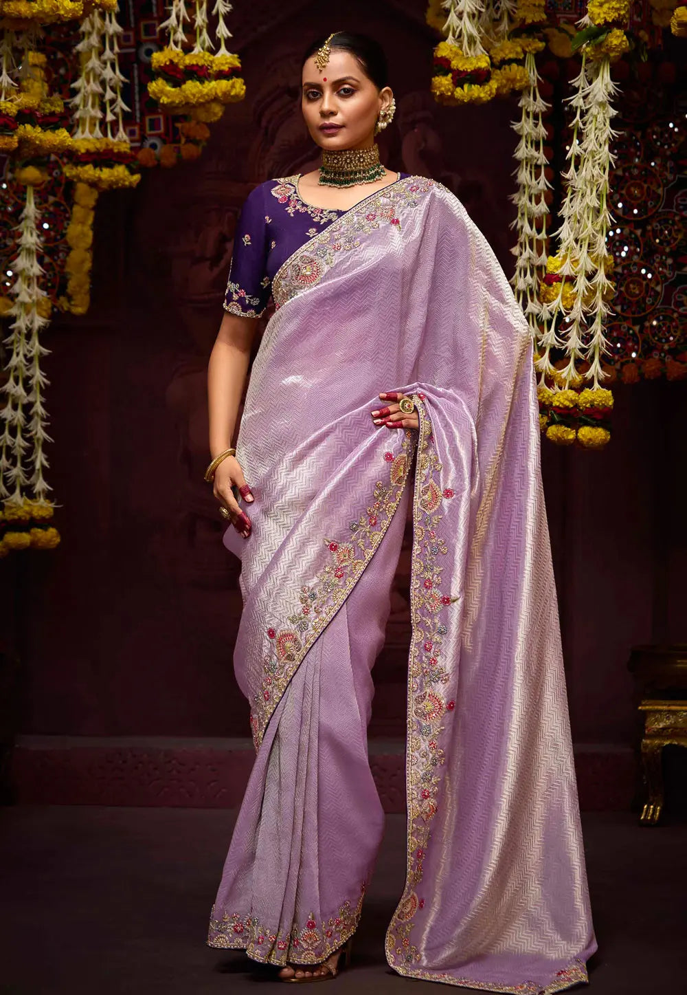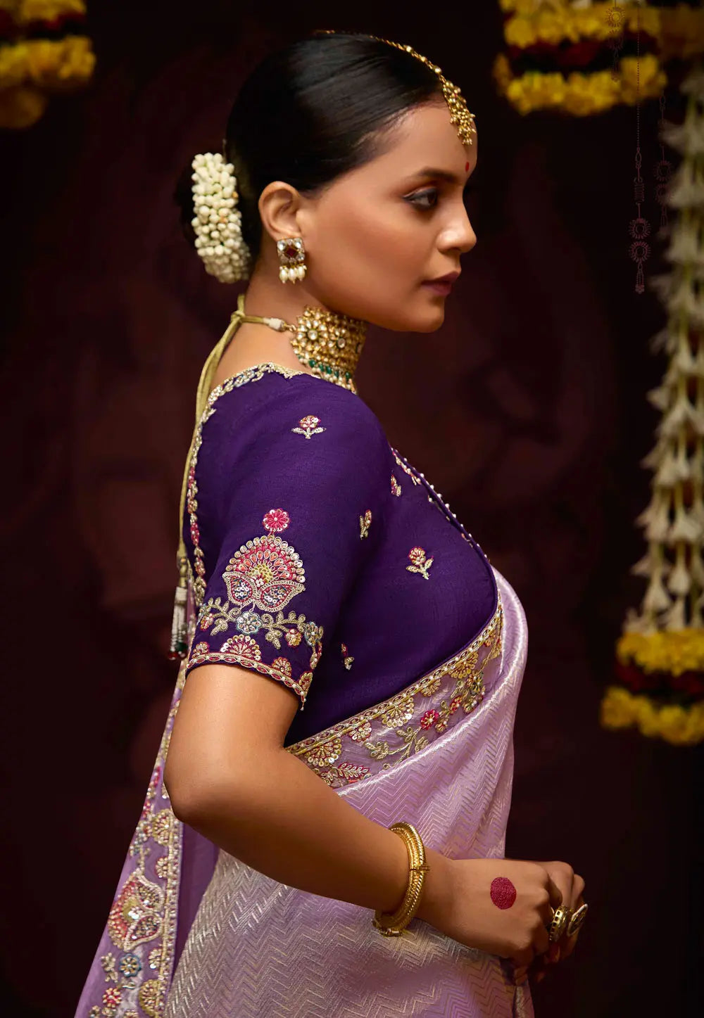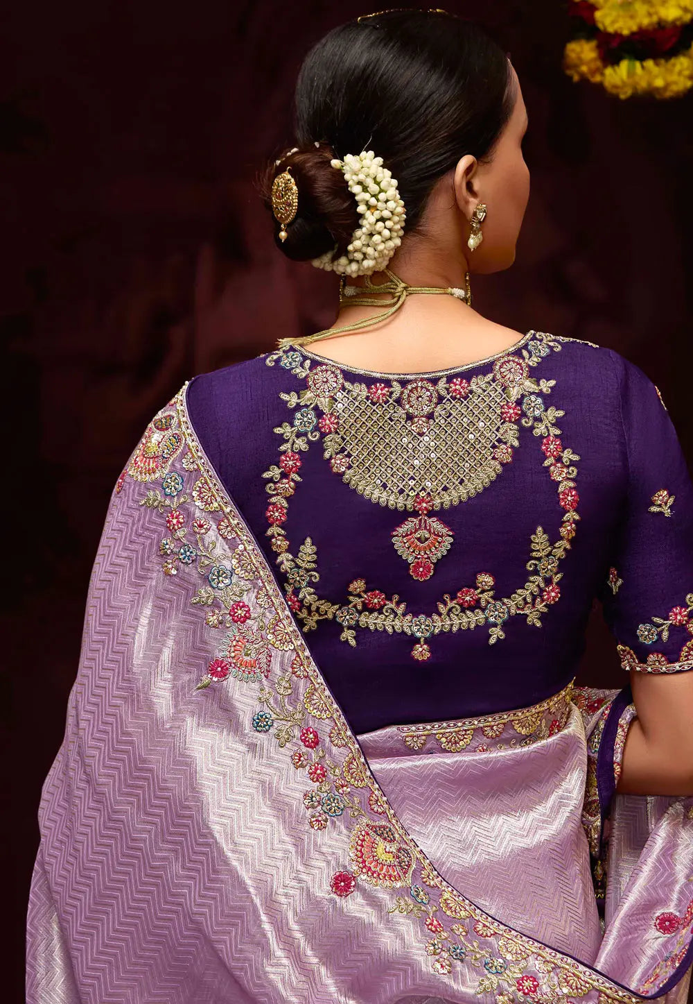 Purple and Lavender Embroidered Wedding Saree