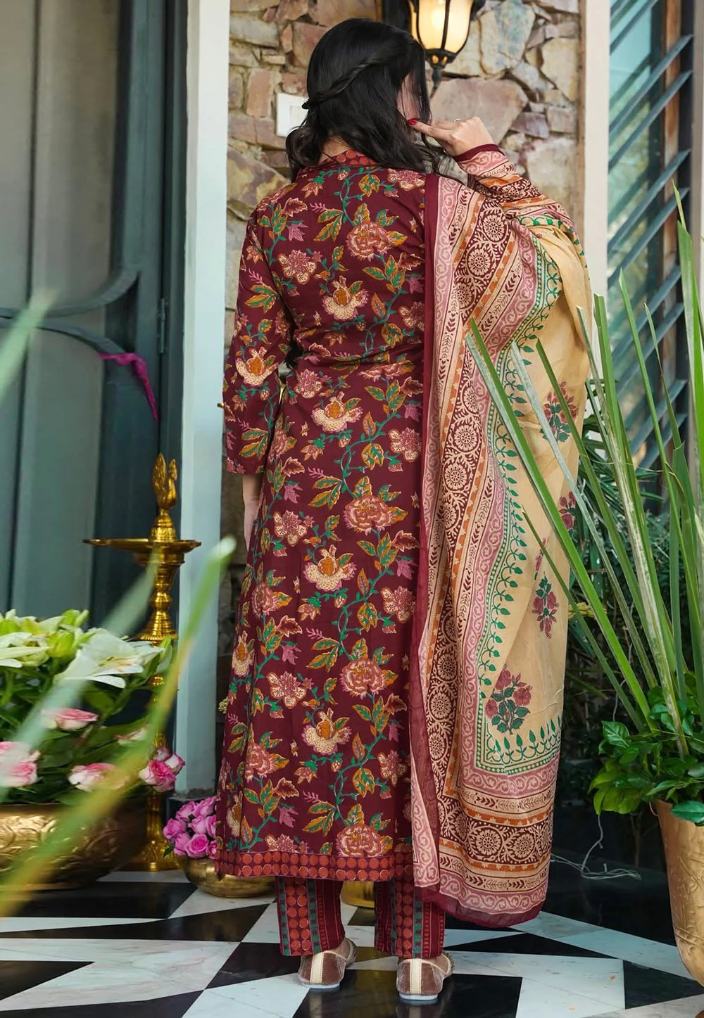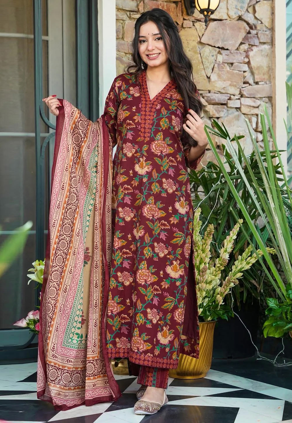 Maroon Printed Pant Style Suit