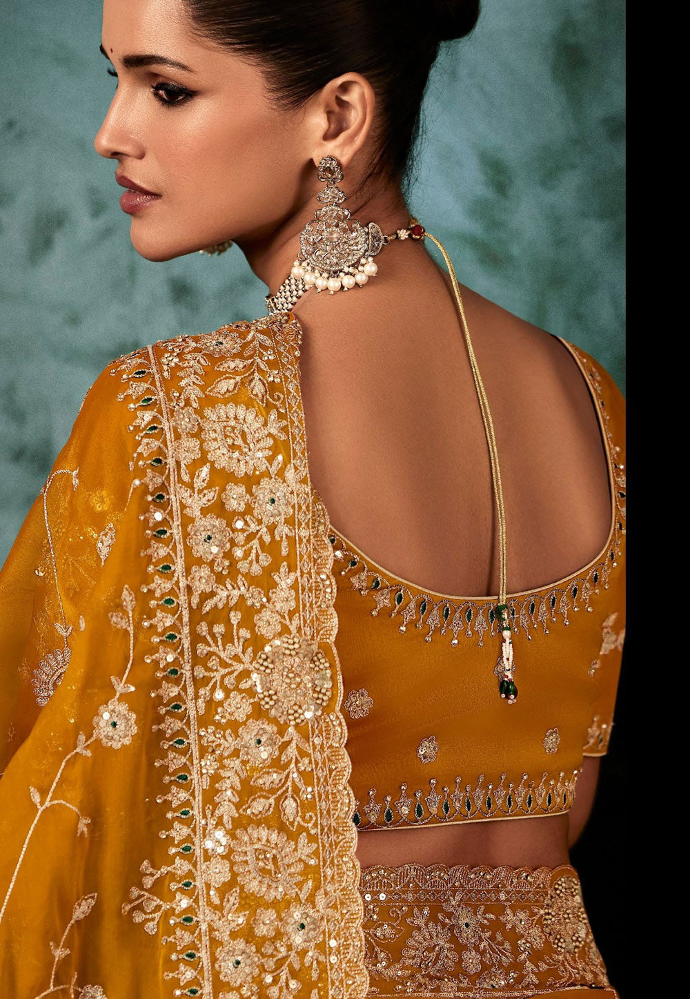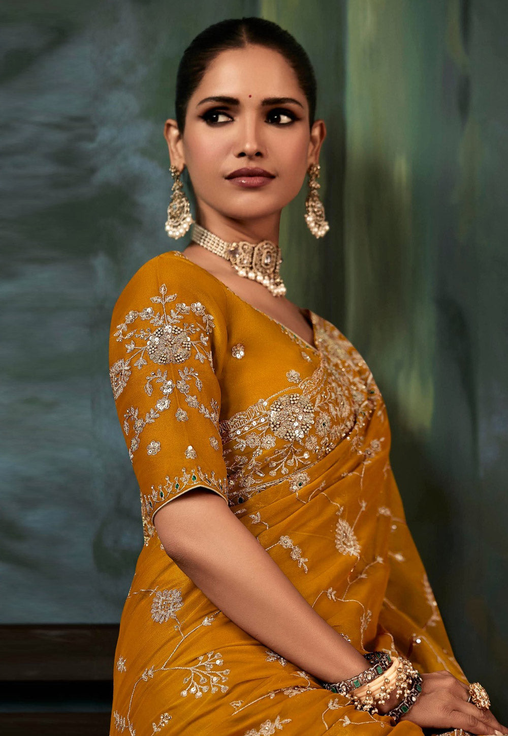 Mustard Yellow Embroidered Festive Saree