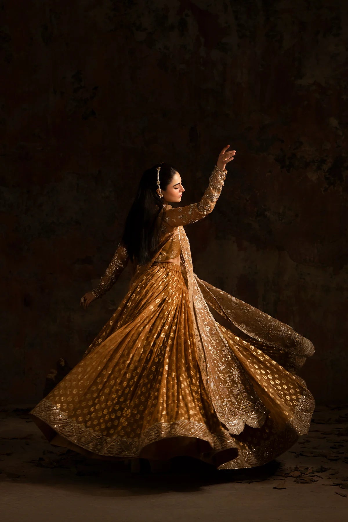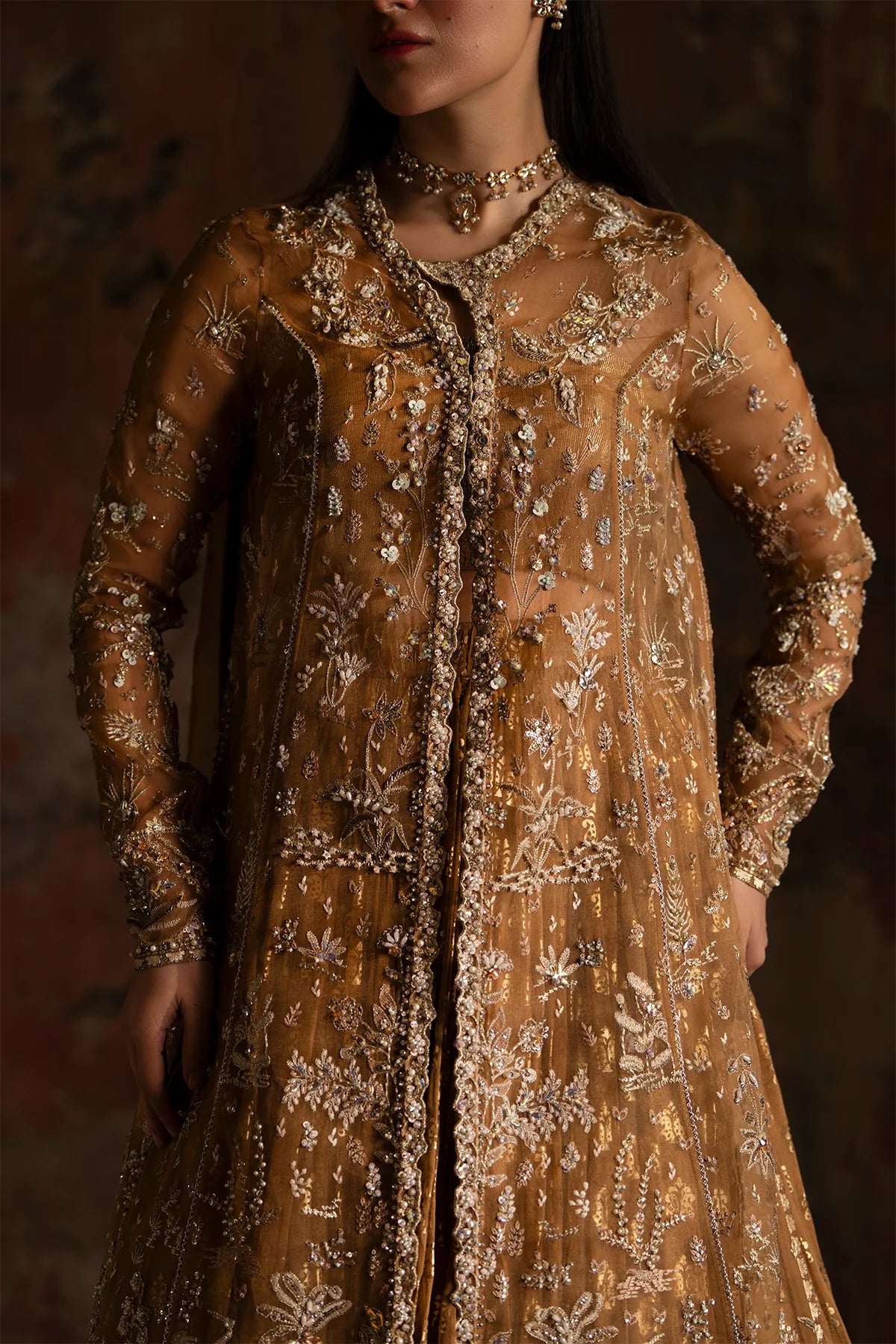Completed with a georgette chiffon lehenga, the ensemble flows effortlessly with romantic fluidity. Every detail reflects thoughtful craftsmanship, making Zinnia an exquisite choice for festive soirées, wedding celebrations, and elegant gatherings.
