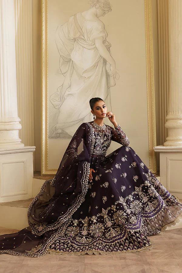 Introducing the Evolet Pishwas, a majestic ensemble in a regal purple hue. This outfit features an organza shirt adorned with intricate floral embroidery and sequin embellishments. Paired with a raw silk lehanga with chata pati detailing, it exudes luxury and elegance. The organza dupatta, bordered on all sides, completes the look. Perfect for special occasions, the Pishwas beautifully blends tradition with sophistication.