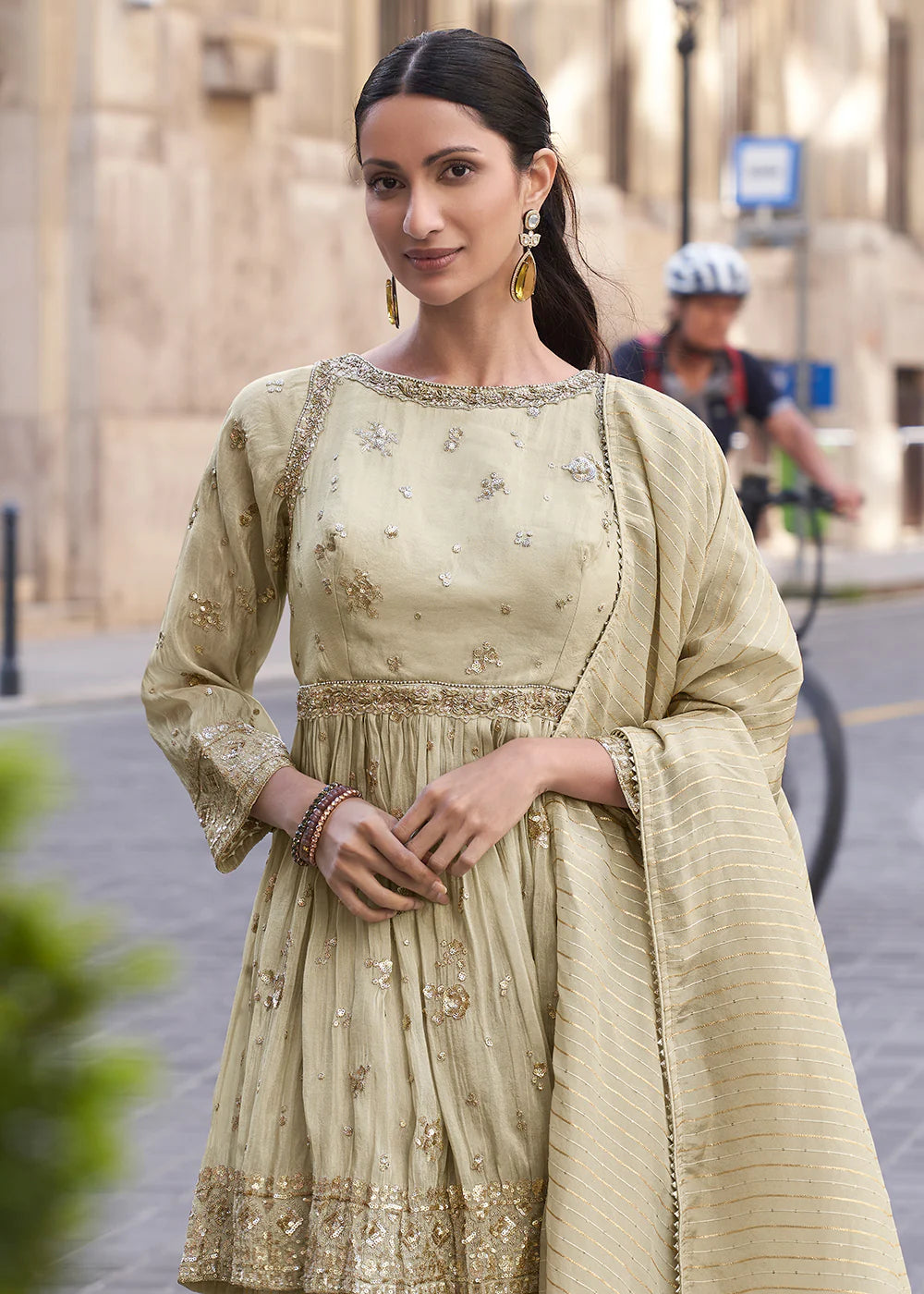 Offwhite Beige Embroidered Sharara Suit