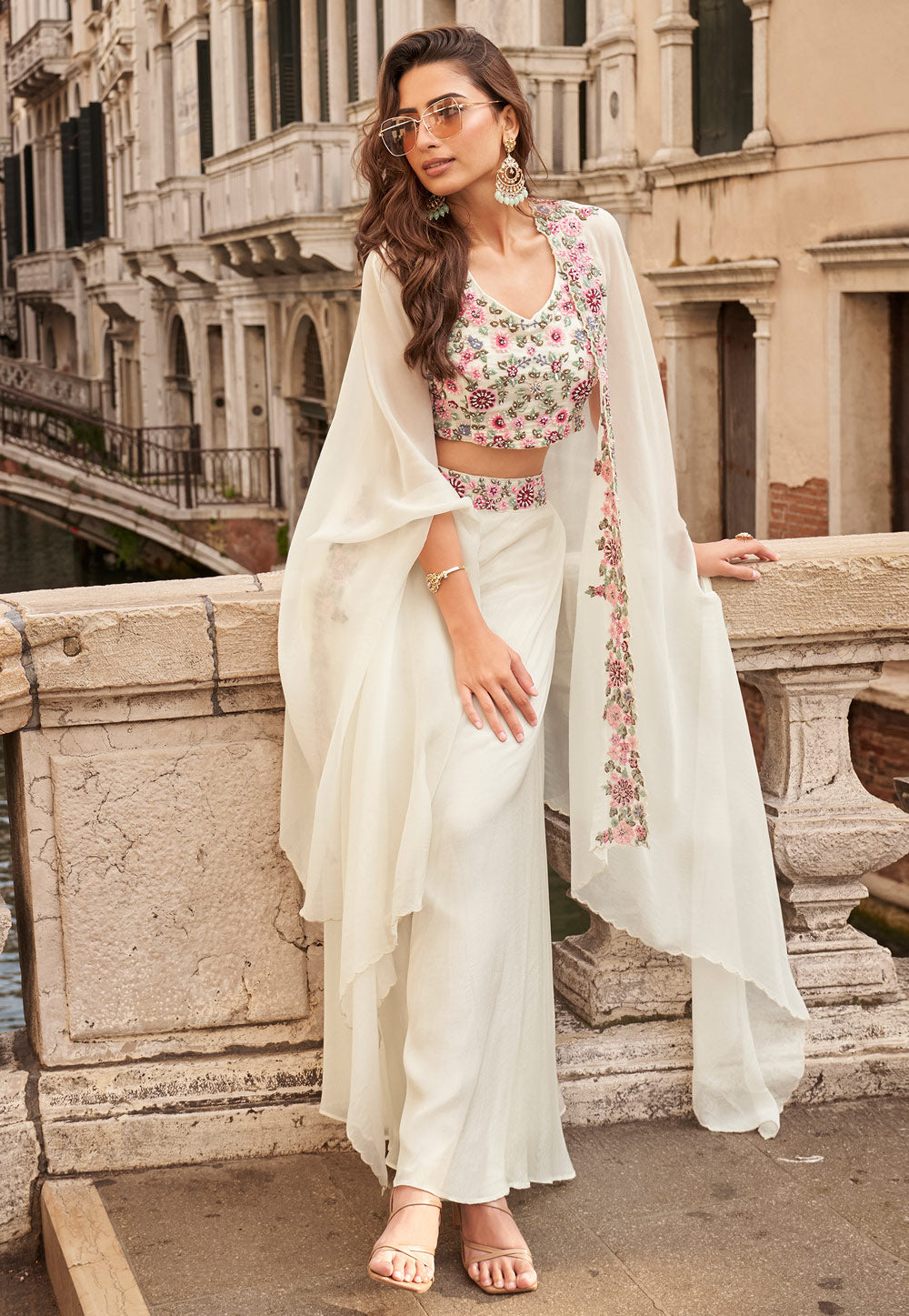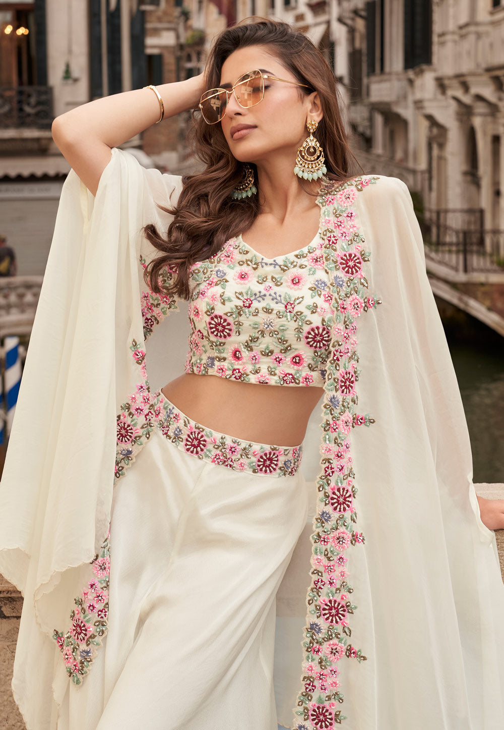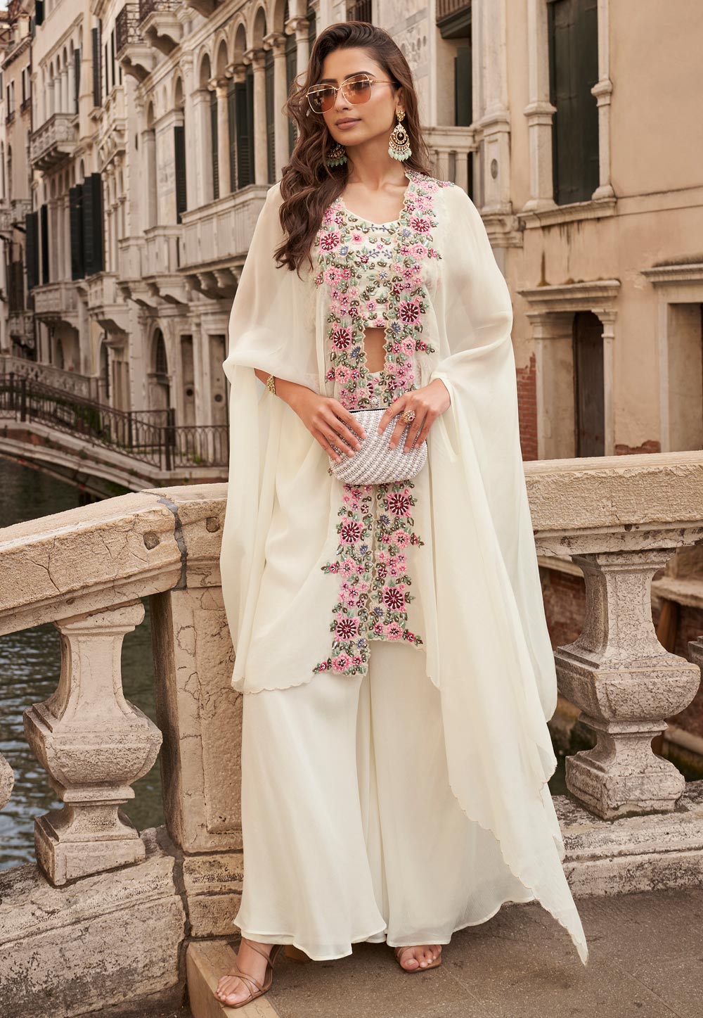 Offwhite Embroidered Jacket Style Sharara Suit