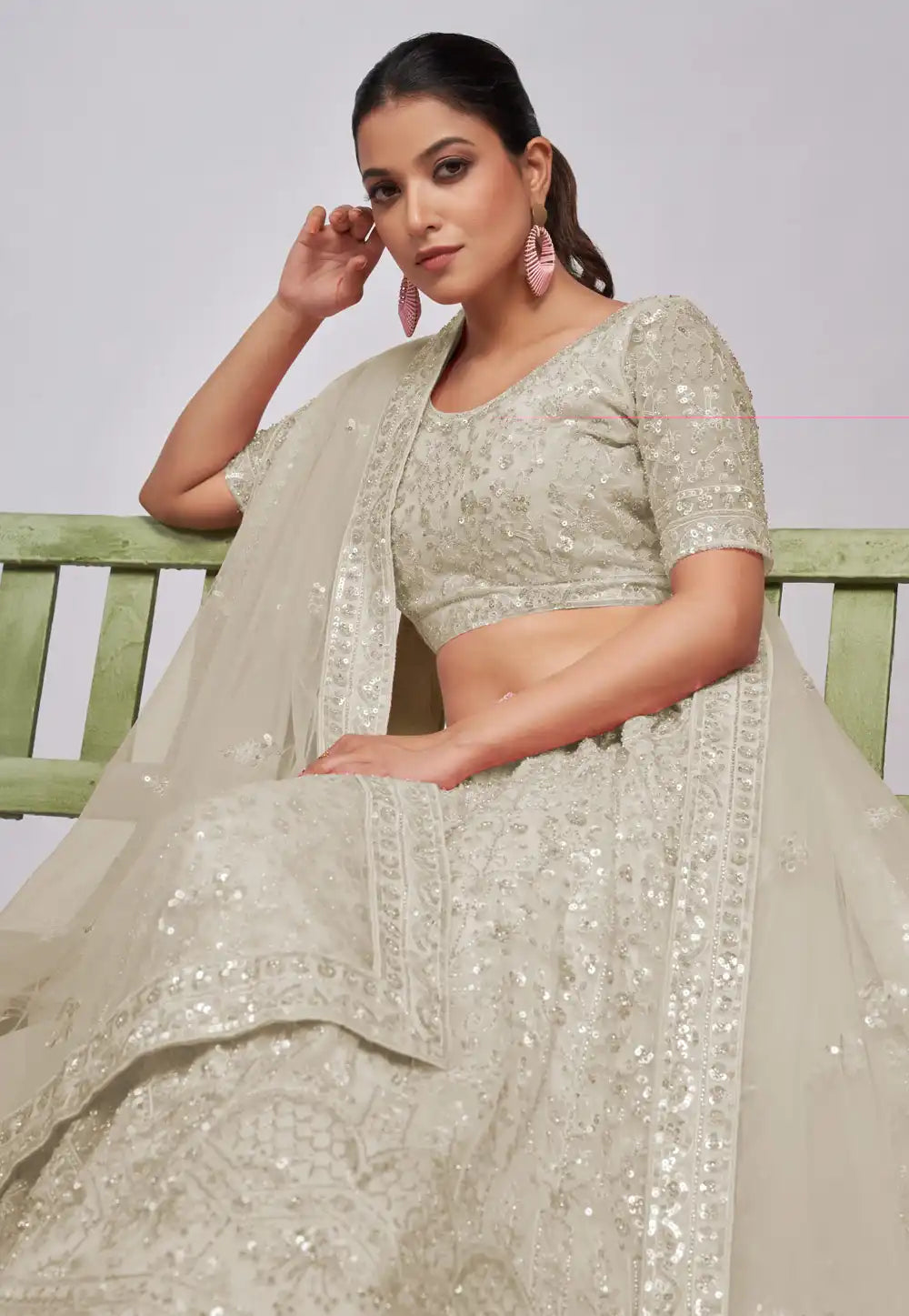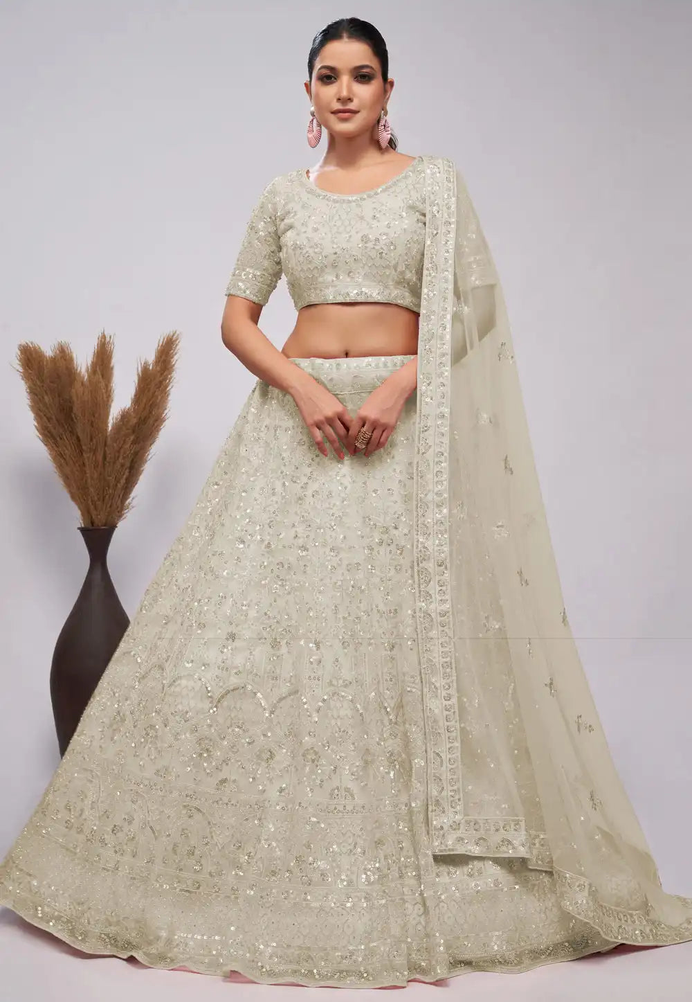 Offwhite Embroidered Wedding Lehenga Choli