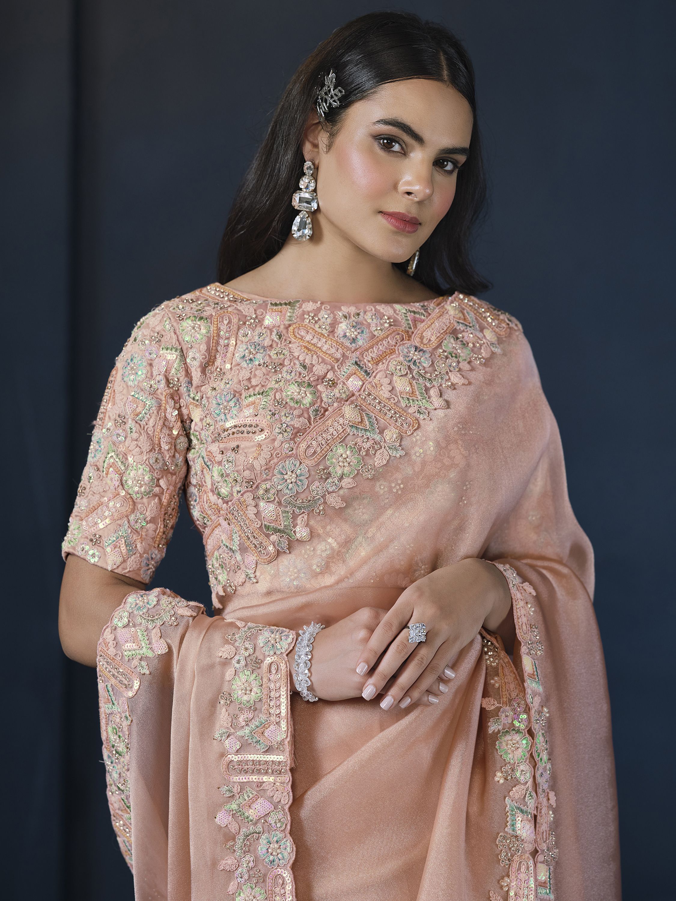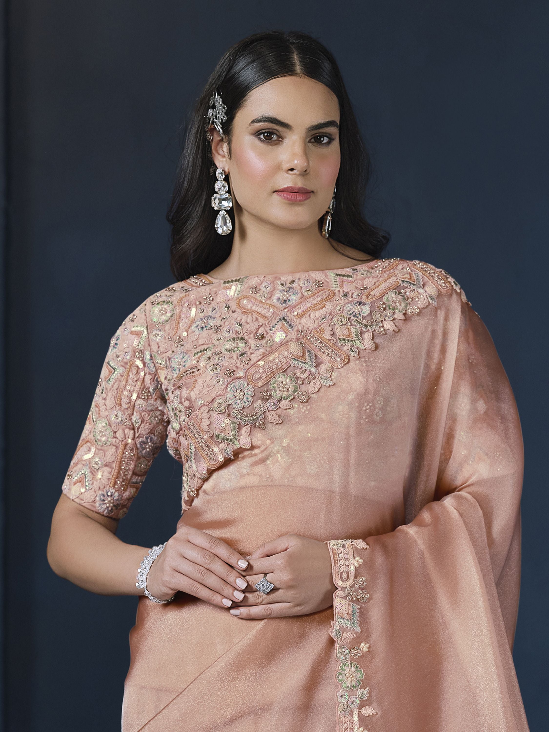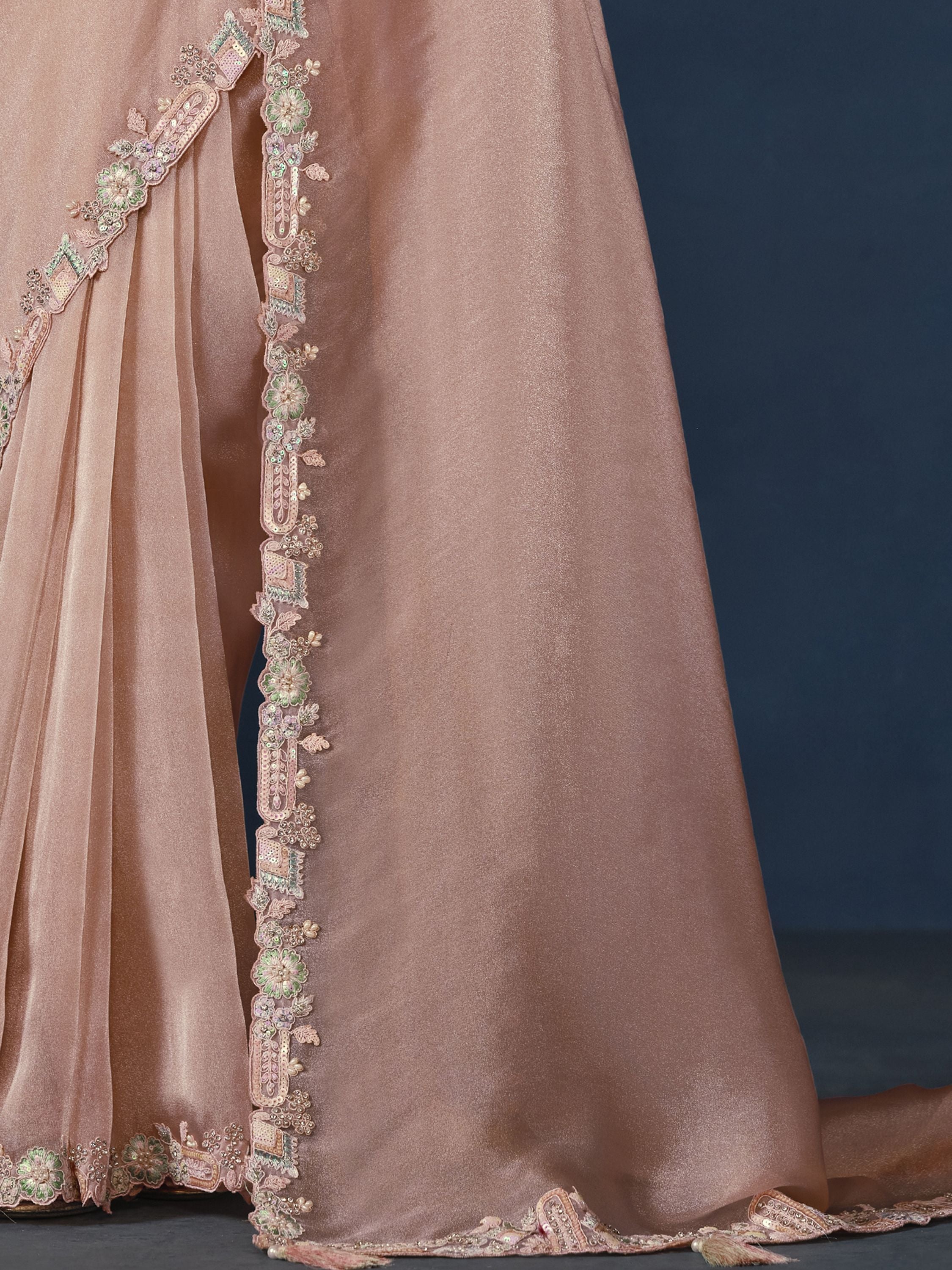 Peach Embroidered Wedding & Festive Saree