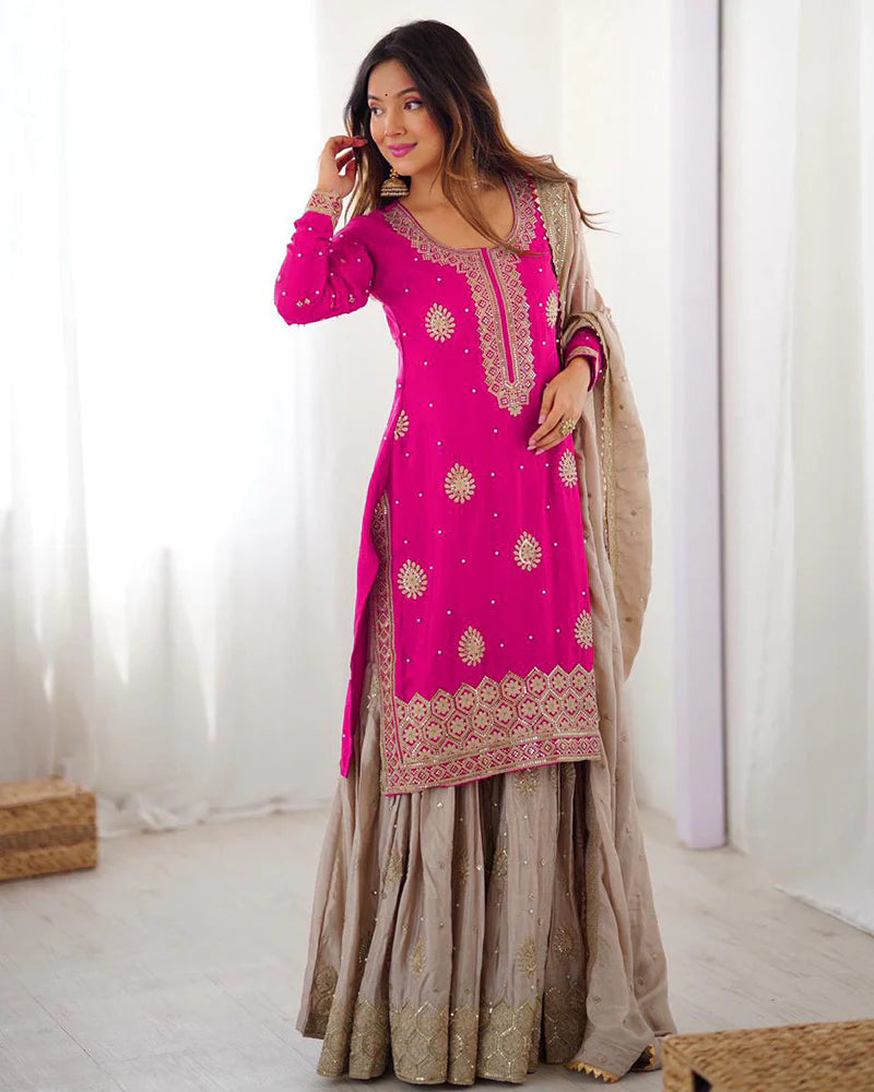 Pink and Mauve Embroidered Sharara Suit
