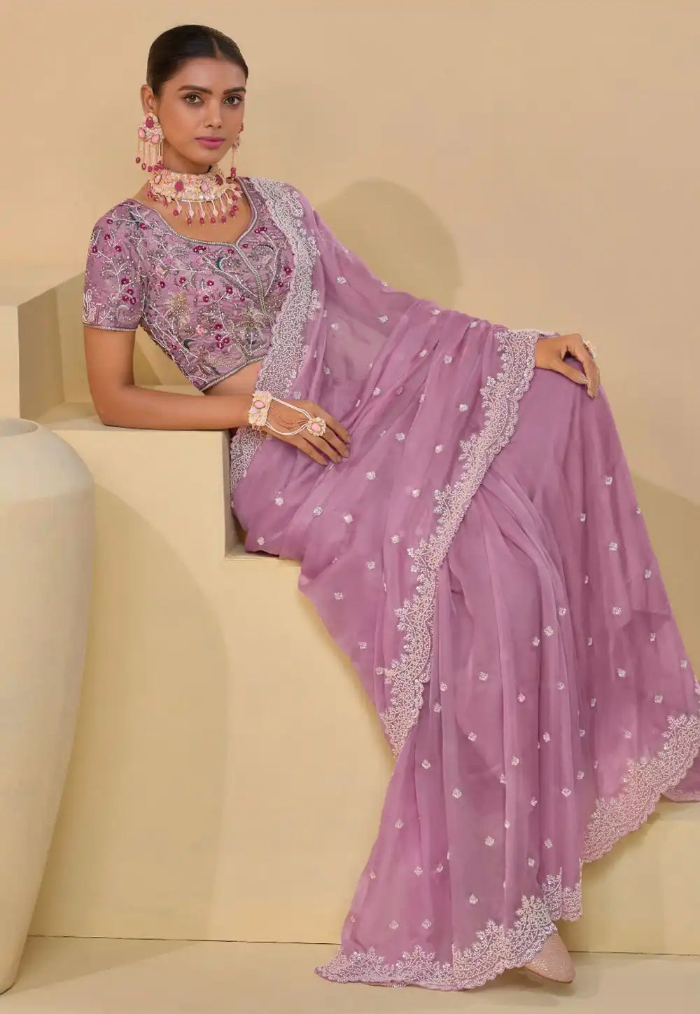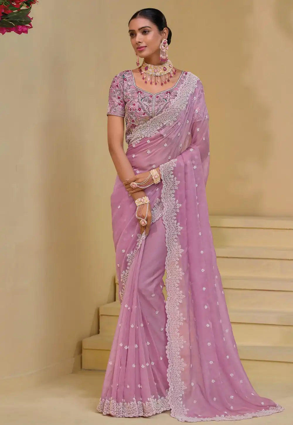 Pink Embroidered Banarasi Tuscany Saree