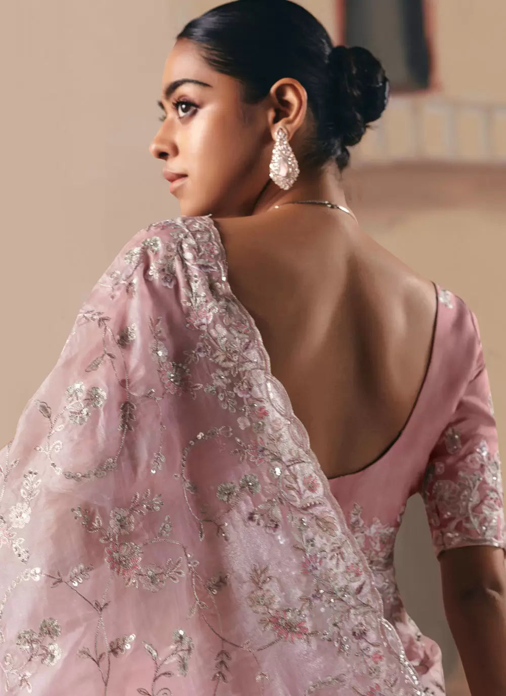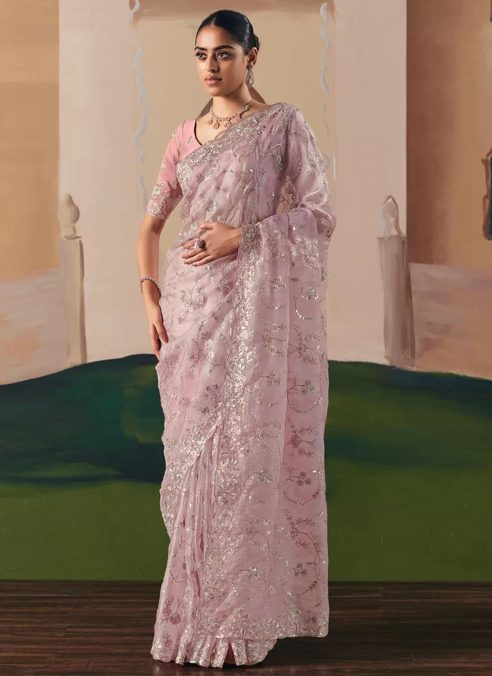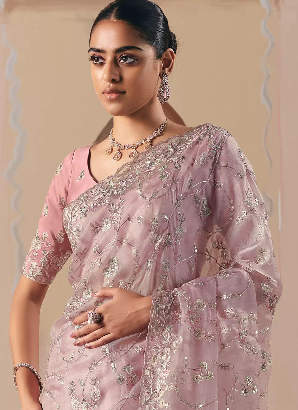 Pink Embroidered Festive Saree