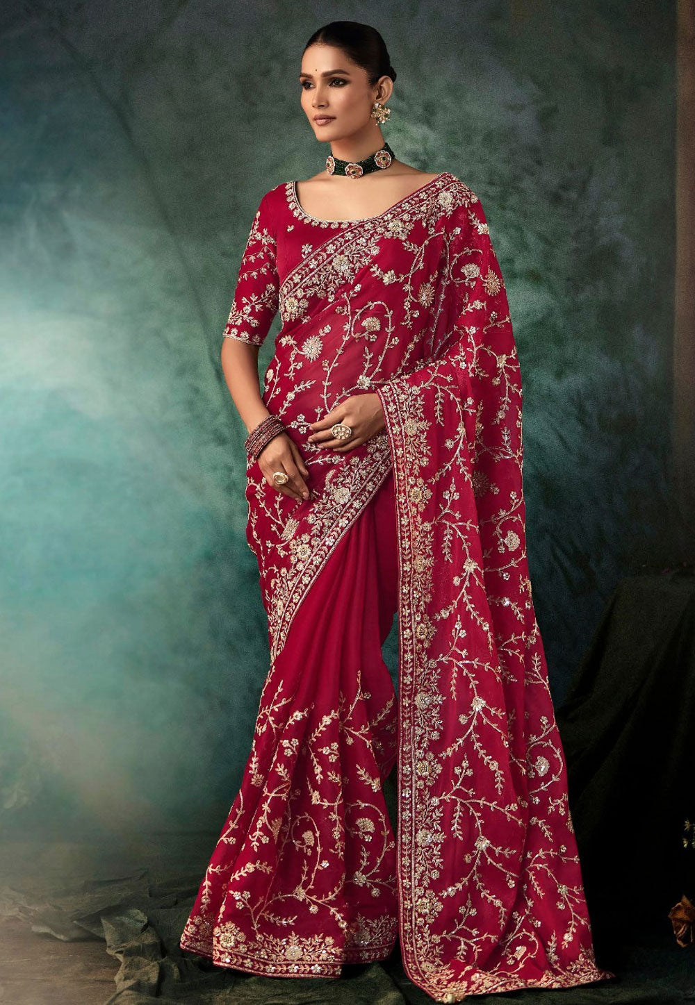 Pink Embroidered Festive Saree