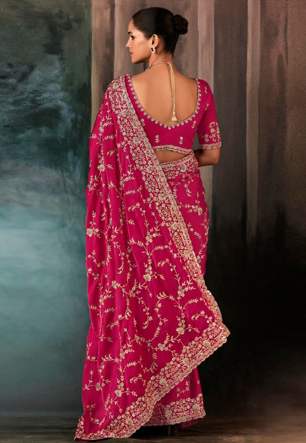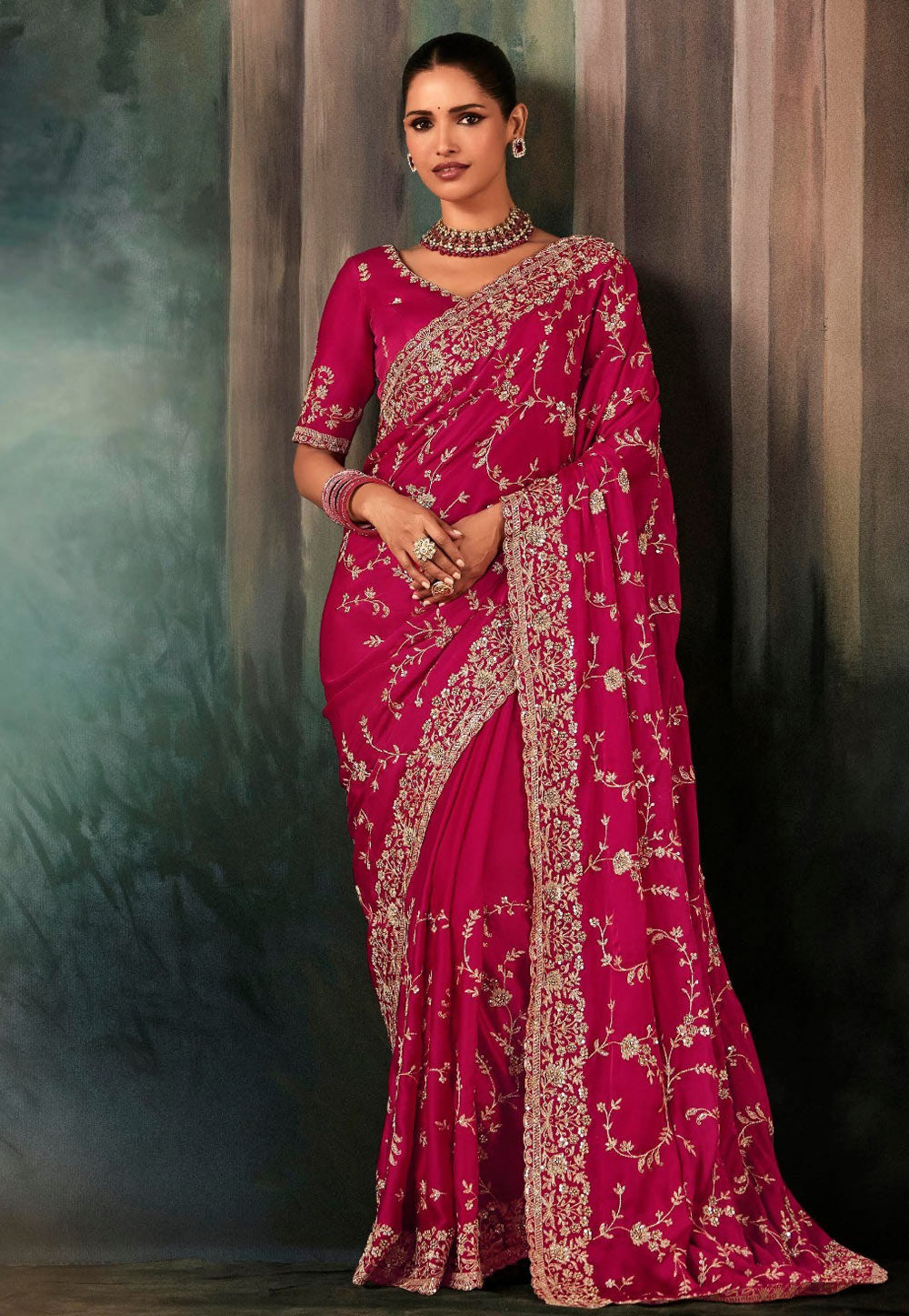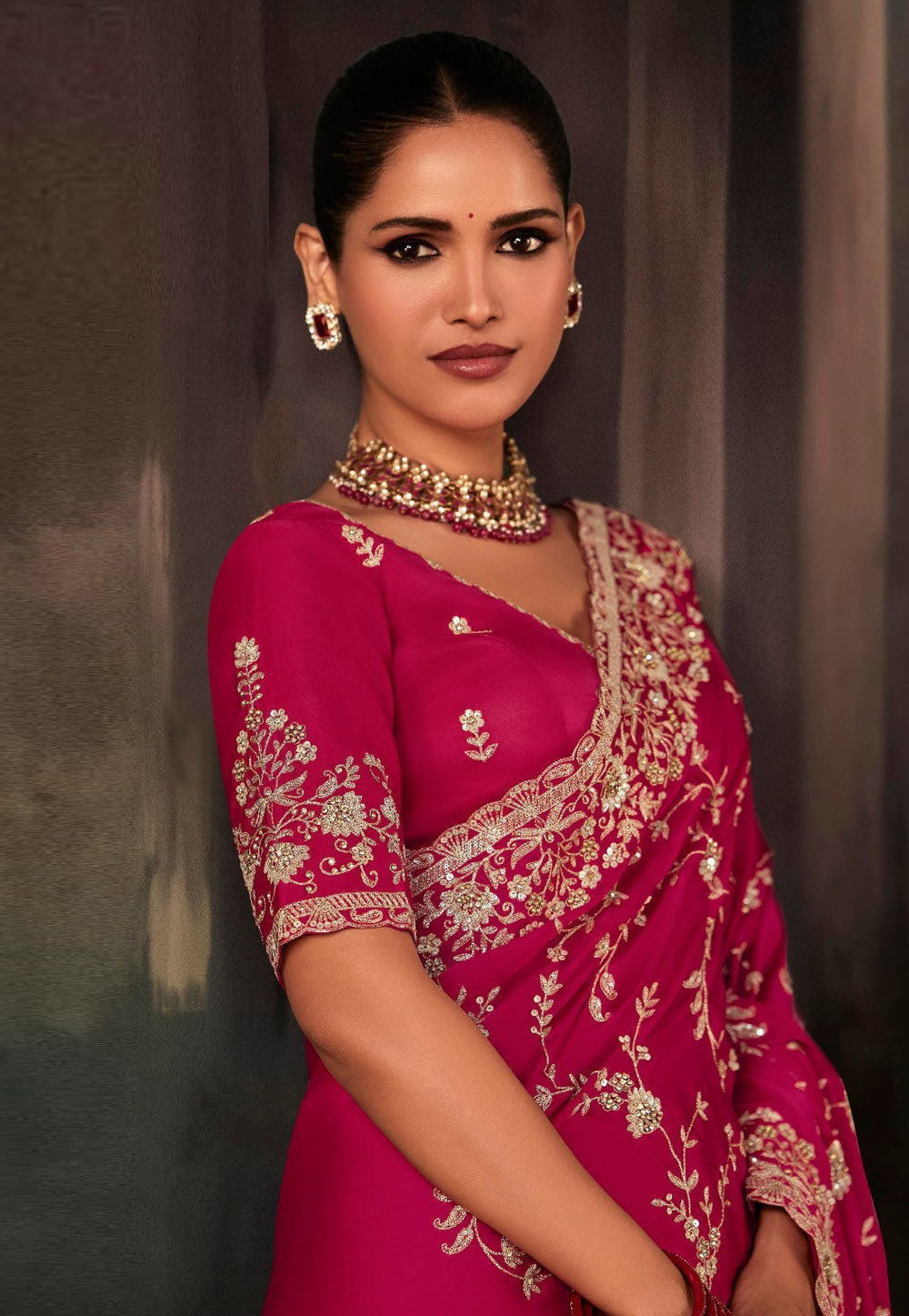 Pink Embroidered Festive Saree