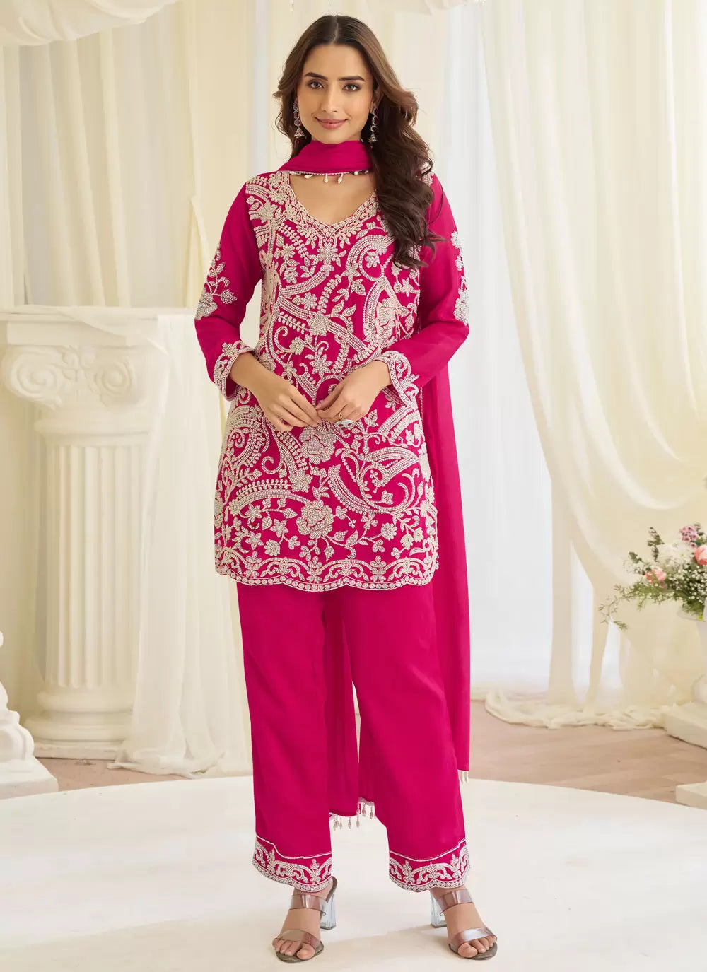 Pink Embroidered Pant Style Suit