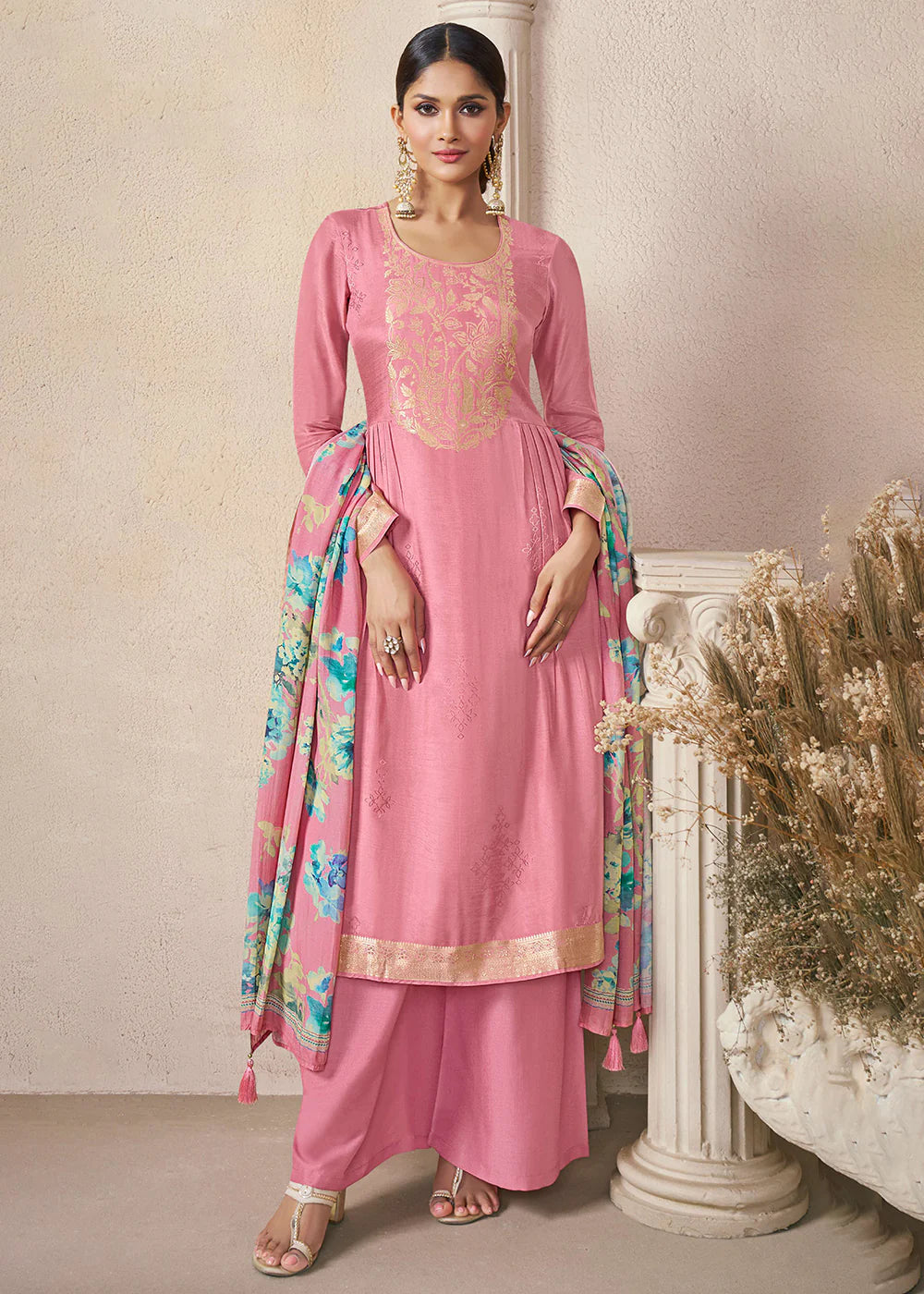 Pink Embroidered Pant Suit