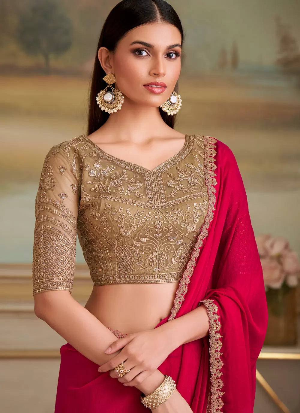 Pink Embroidered Saree