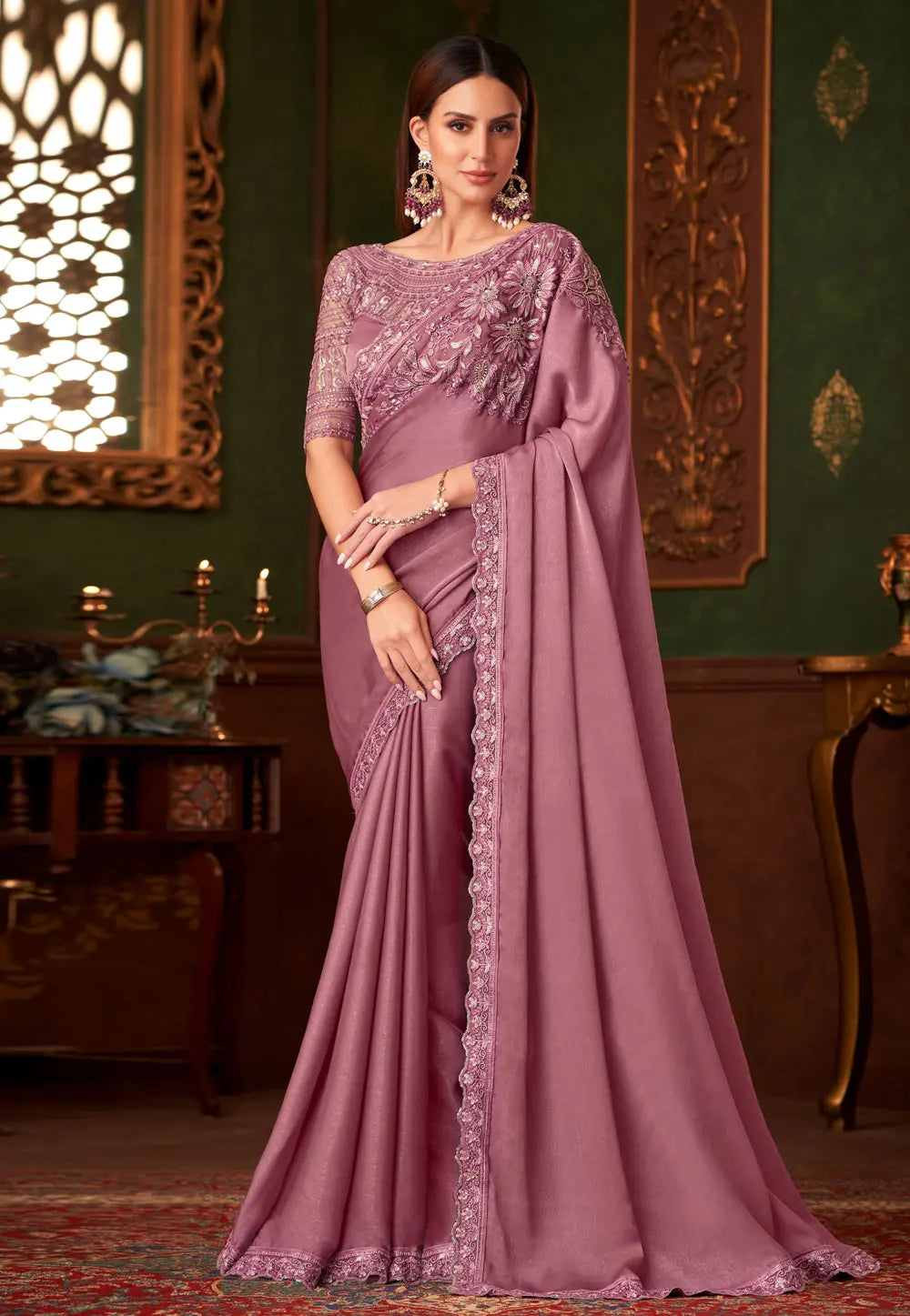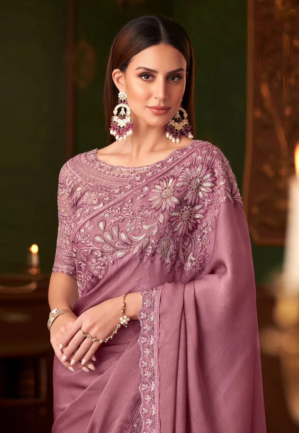 Pink Embroidered Saree