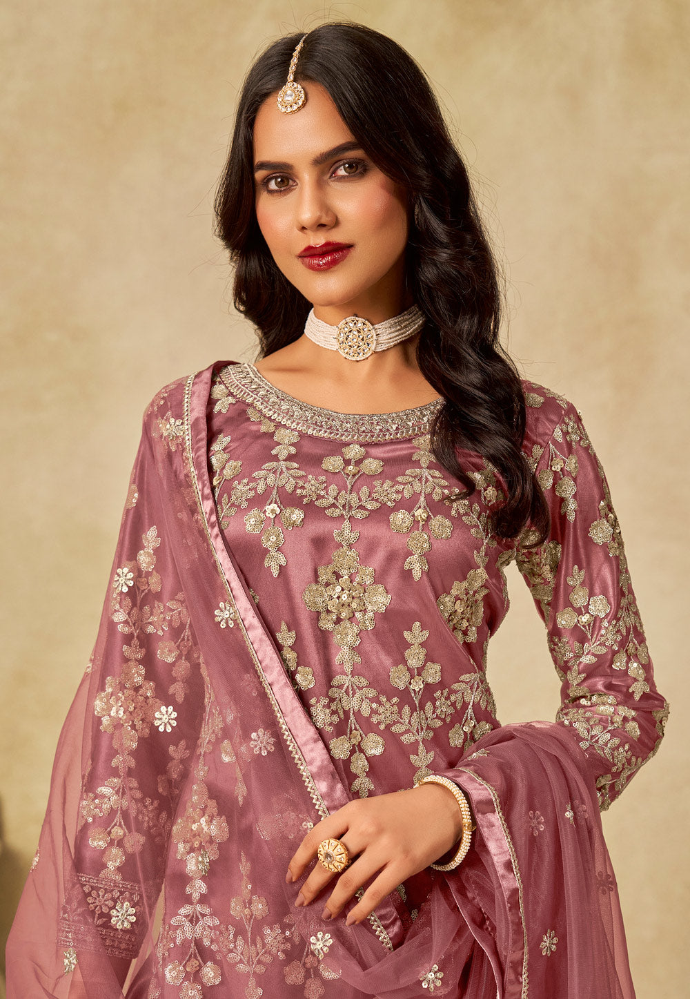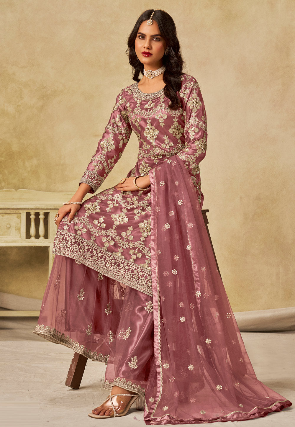 Pink Embroidered Sharara Suit