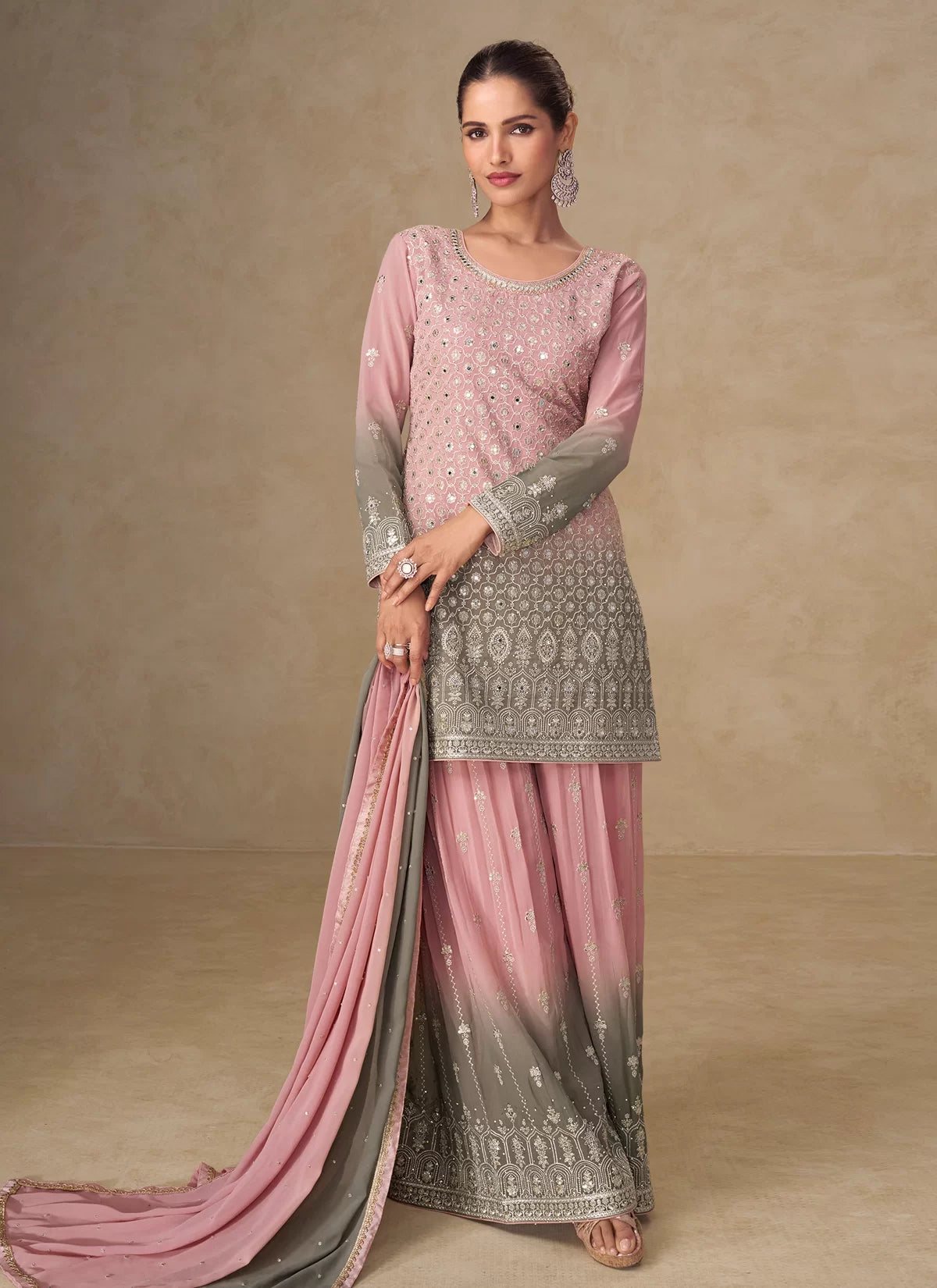 Pink Embroidered Sharara Suit