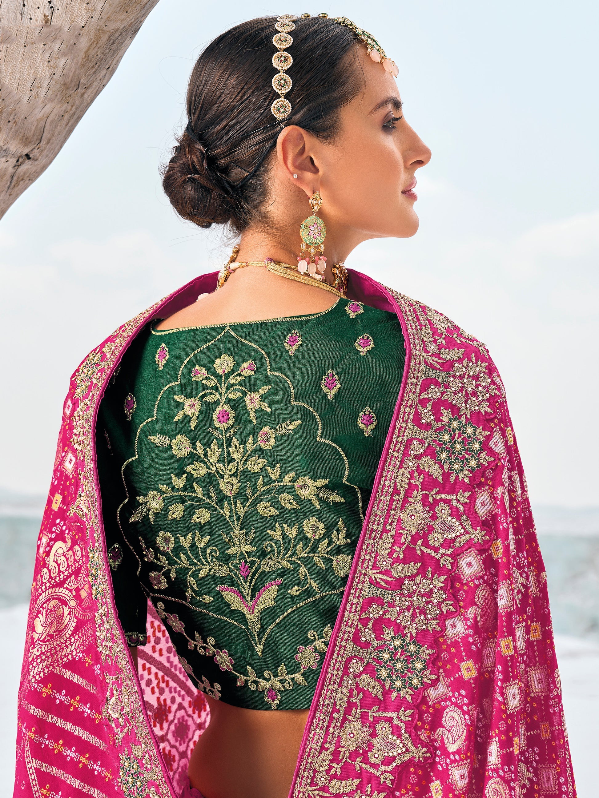 Pink Embroidered Wedding/Festive Saree