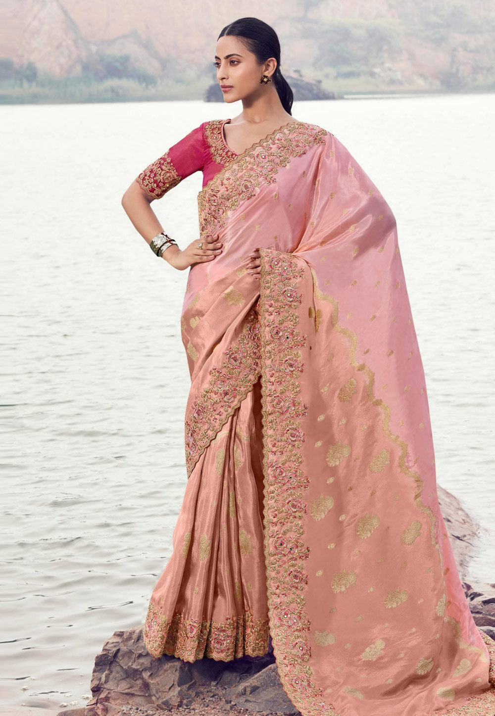 Pink Embroidered Wedding Saree
