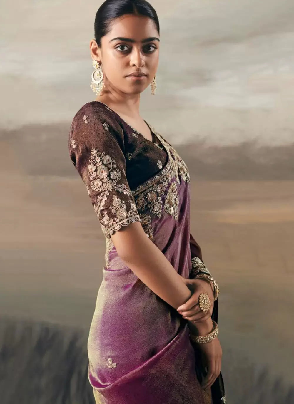 Purple and Green Embroidered Festive Saree