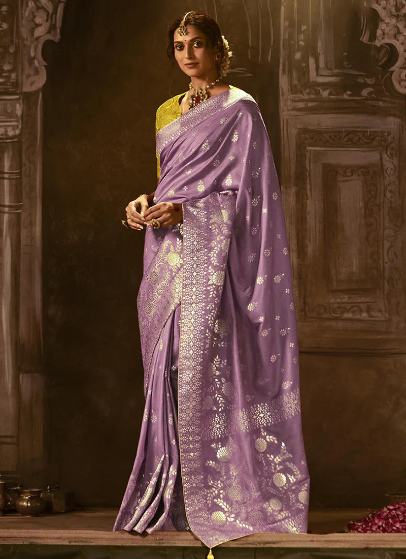 Purple and Yellow Embroidered Wedding Saree
